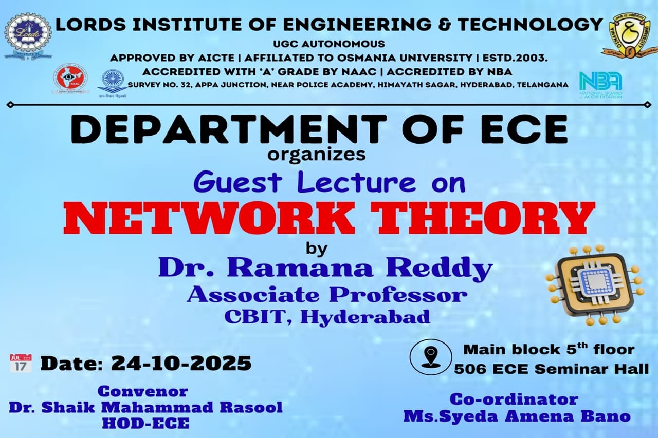 Guest Lecture on Network Theory A guest lecture on Network theory is organized by the department of Electronics and Communication Engineering on 24 October 2025 the resource person is Dr.RAMANA REDDY assistant Professor (ECE) From CBIT