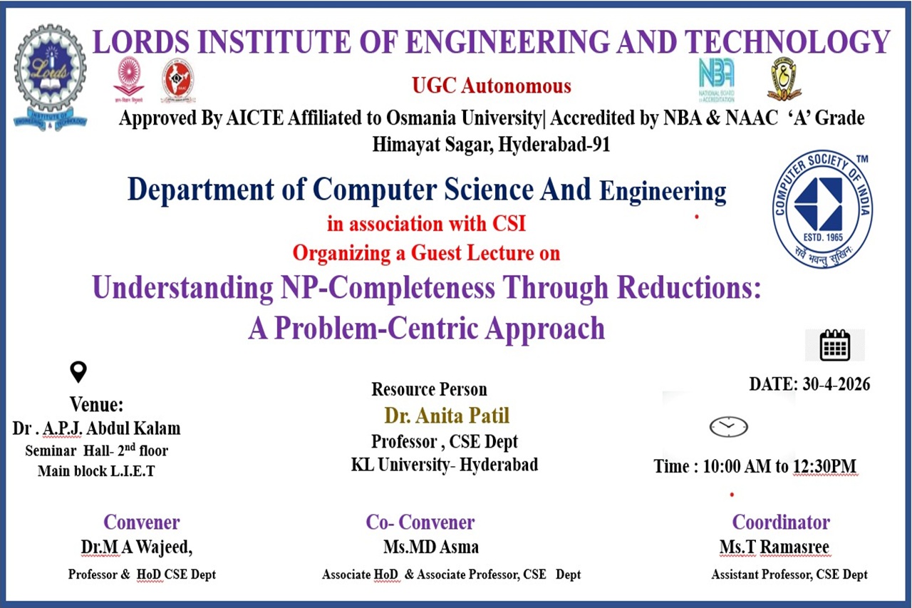 Organized by: Lords Institute of Engineering and Technology(A)