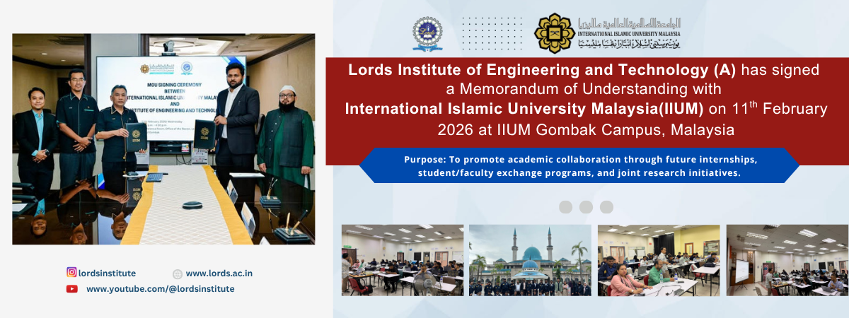 Lords Institute of Engineering and Technology has signed a Memorandum of Understanding with International Islamic University Malaysia (IIUM) on 10th February 2026 at IIUM Gombak Campus (Malaysia)View