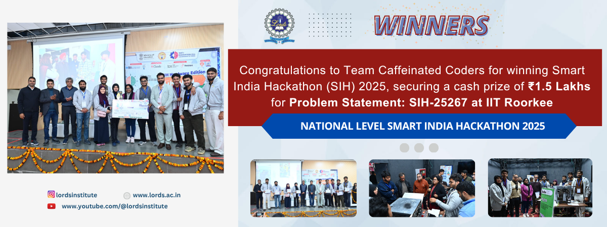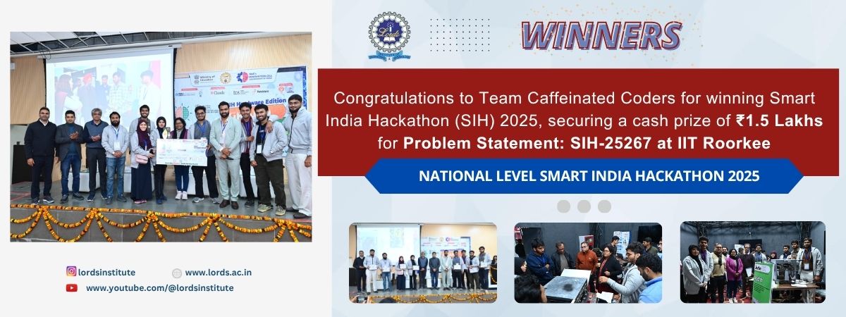 Lords Students shines at Smart India Hackathon 2025 at IIT Roorkee (8–12 Dec 2025), addressing problem statement SIH25267 and securing ₹1.5 Lakhs prizeView