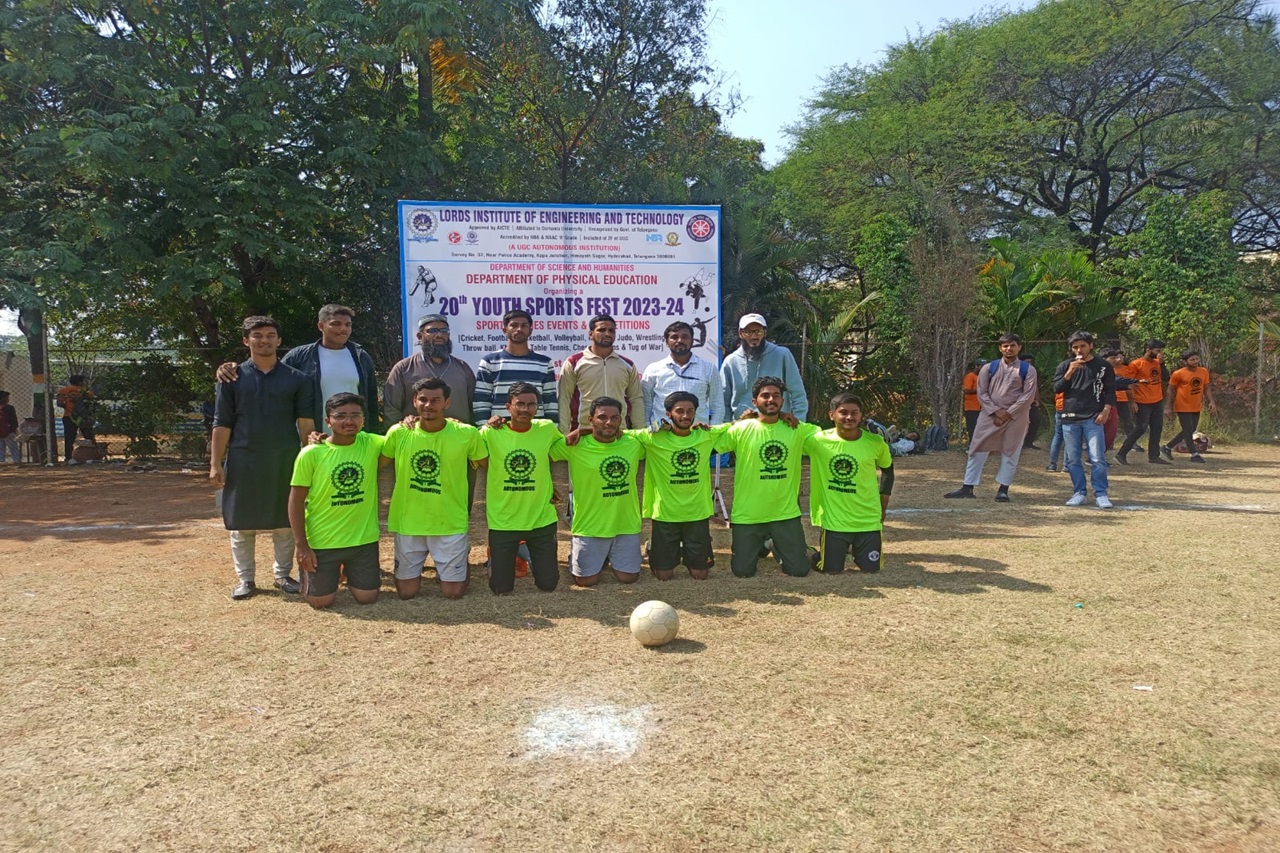 The 20th Youth Sports Fest exclusively for B.E. 1st year students at Lords Institute of Engineering and Technology, hosted by the Department of Physical Education, Science, and Humanities, took place from December 7th to December 9th, 2023, running daily from 9:30 am to 5:00 pm. The fest witnessed active participation from numerous students in a wide array of sports, games, and competitions, including cricket, football, basketball, volleyball, kabaddi, judo, wrestling, throwback, kho-kho, table tennis, chess, carom, and tug of war. The primary goals were to nurture specific athletic skills, promote teamwork, improve physical fitness, and familiarize participants with the college’s campus.