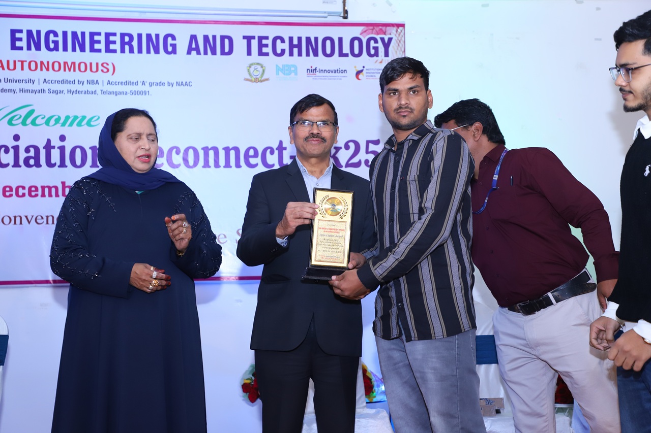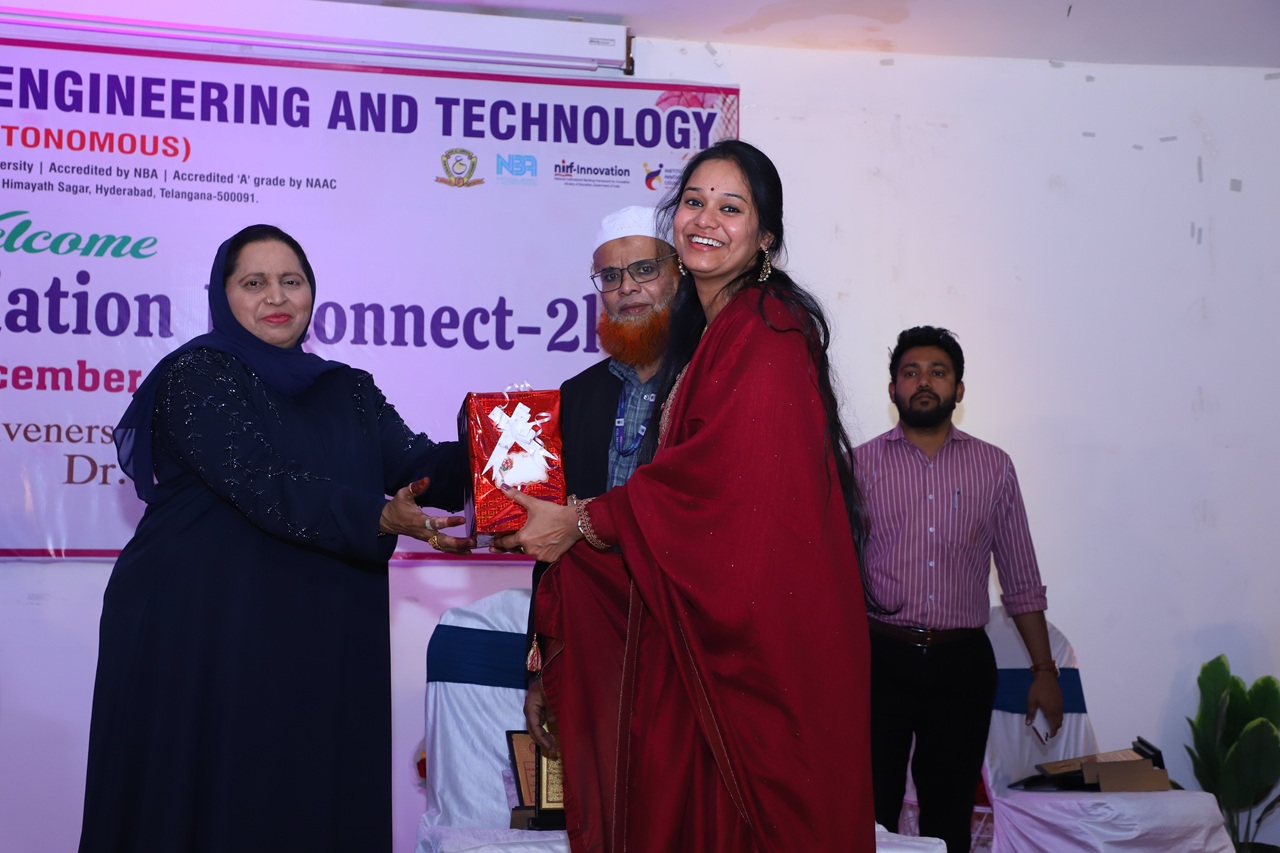 The Chairman, Mr. CA. Basha Mohiuddin, conveyed his best wishes for the alumni’s continued success. The Vice-Chairman, Mr. Syed Touseef, thanked the alumni for their presence and highlighted their role in the institution’s growth. Dr. Rizwana Begum, Secretary, expressed her joy in meeting the alumni, while Dr. Ravi Kishore Singh, Principal, encouraged them to strengthen industry–institute collaboration. Dr. Syed Azam Pasha Quadri, Vice Principal, appreciated the alumni’s contributions and urged support through MoUs, internships, and placements.