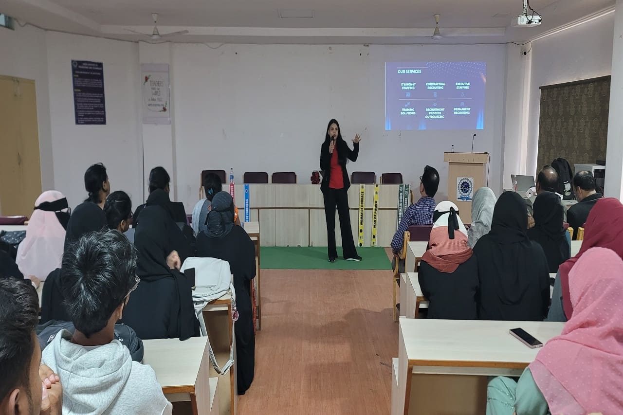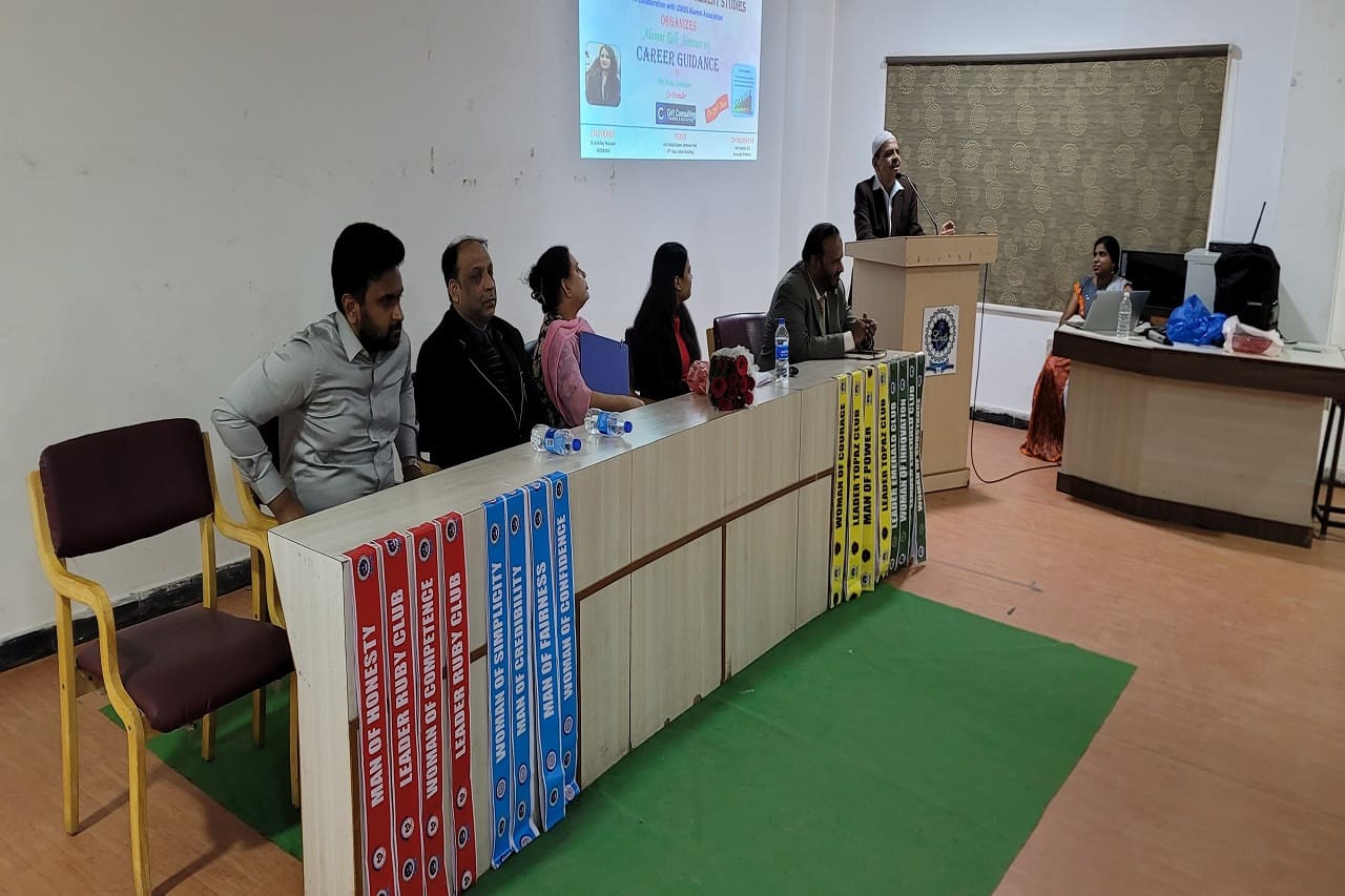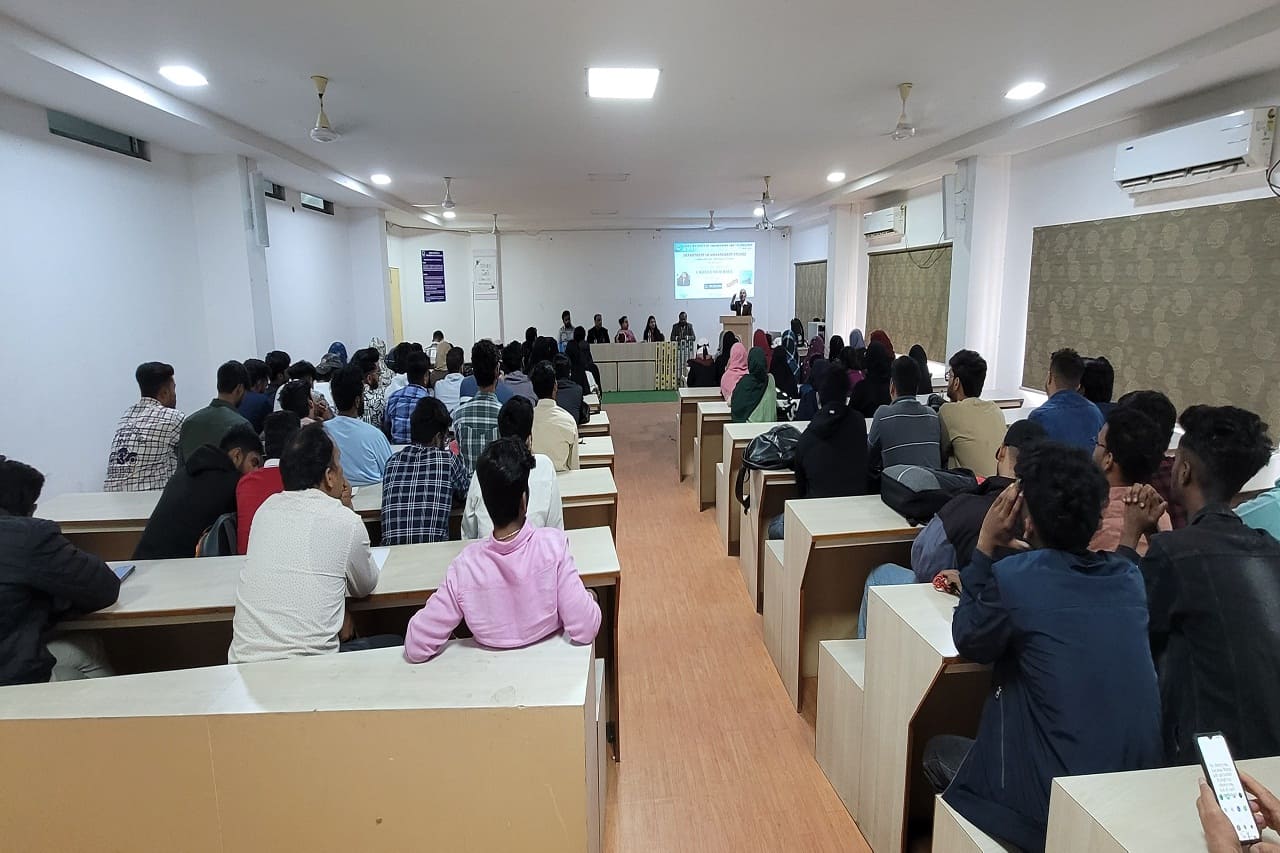 Description about the event: The Department of Management Studies, in collaboration with LORDS Alumni Association, organized an Alumni Talk on Career Guidance on 25th November 2024 at the A.P.J. Abdul Kalam Seminar Hall. The Guest of Honour was Mr. Syed Hameed Sir, Ex-Principal of Indian Embassy School-Jubail, and the speaker was Ms. Arma Mahereen, MBA 2021 batch alumna and Co-Founder of GRIT Consulting, Training and Recruiting. The session inspired 100 students, offering invaluable advice on career paths, networking, continuous learning, and adaptability.