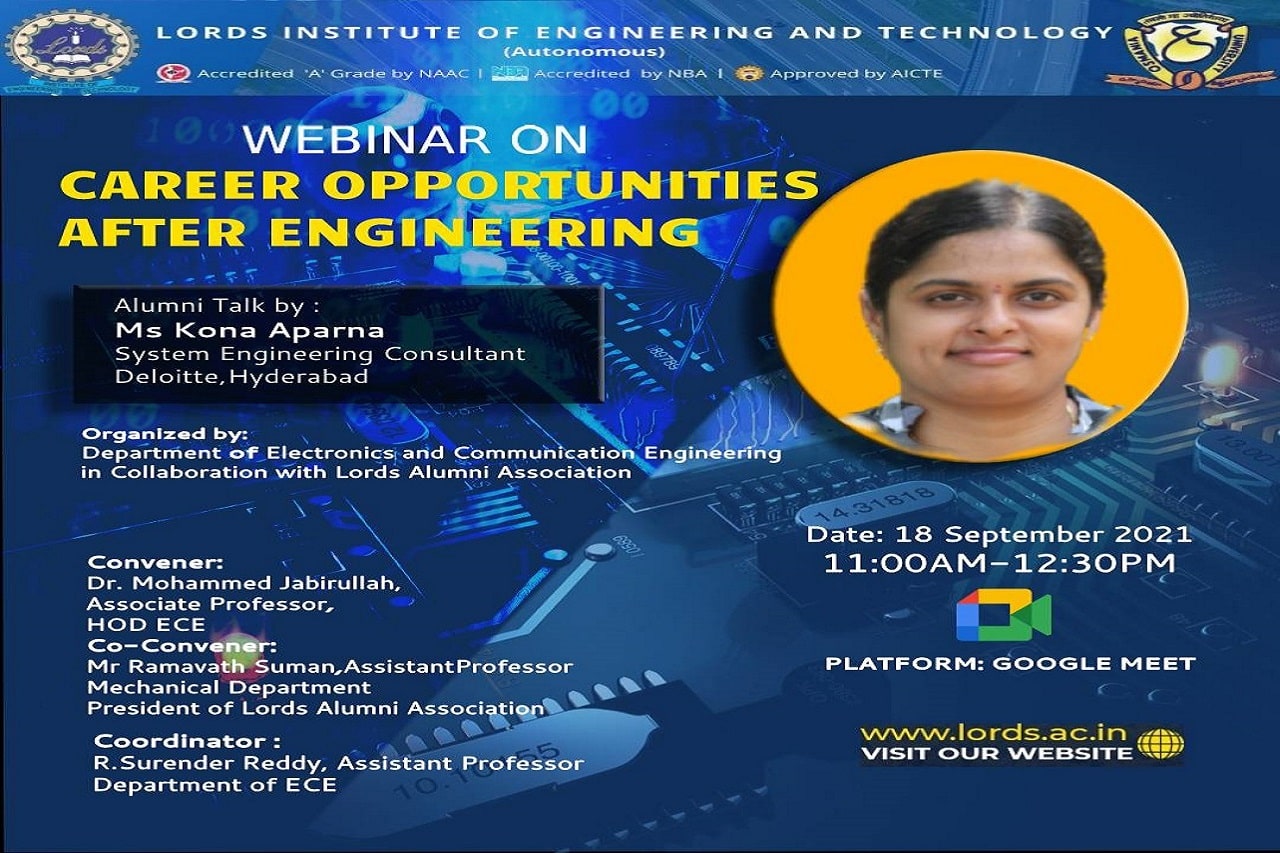 | 18-09-2021 | Career Opportunities after Engineering | Ms. Kona Aparna, System Engineering consultant, Deloitte, Hyderabad |