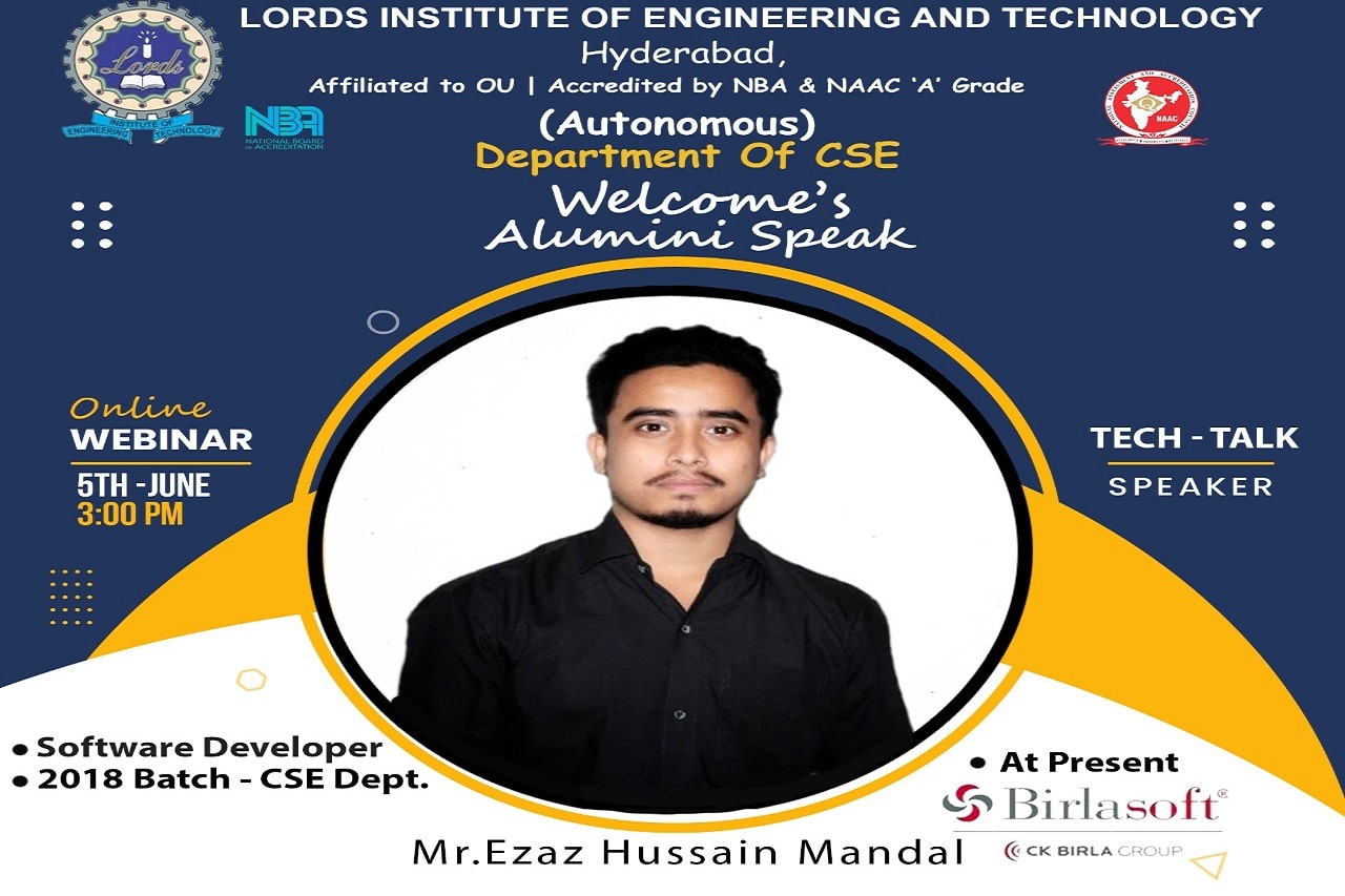 | 05-06-2021 | Tech Talk | Mr. Ezaz Hussain Mandal, Software Developer, Birla Soft (CK Birla) |