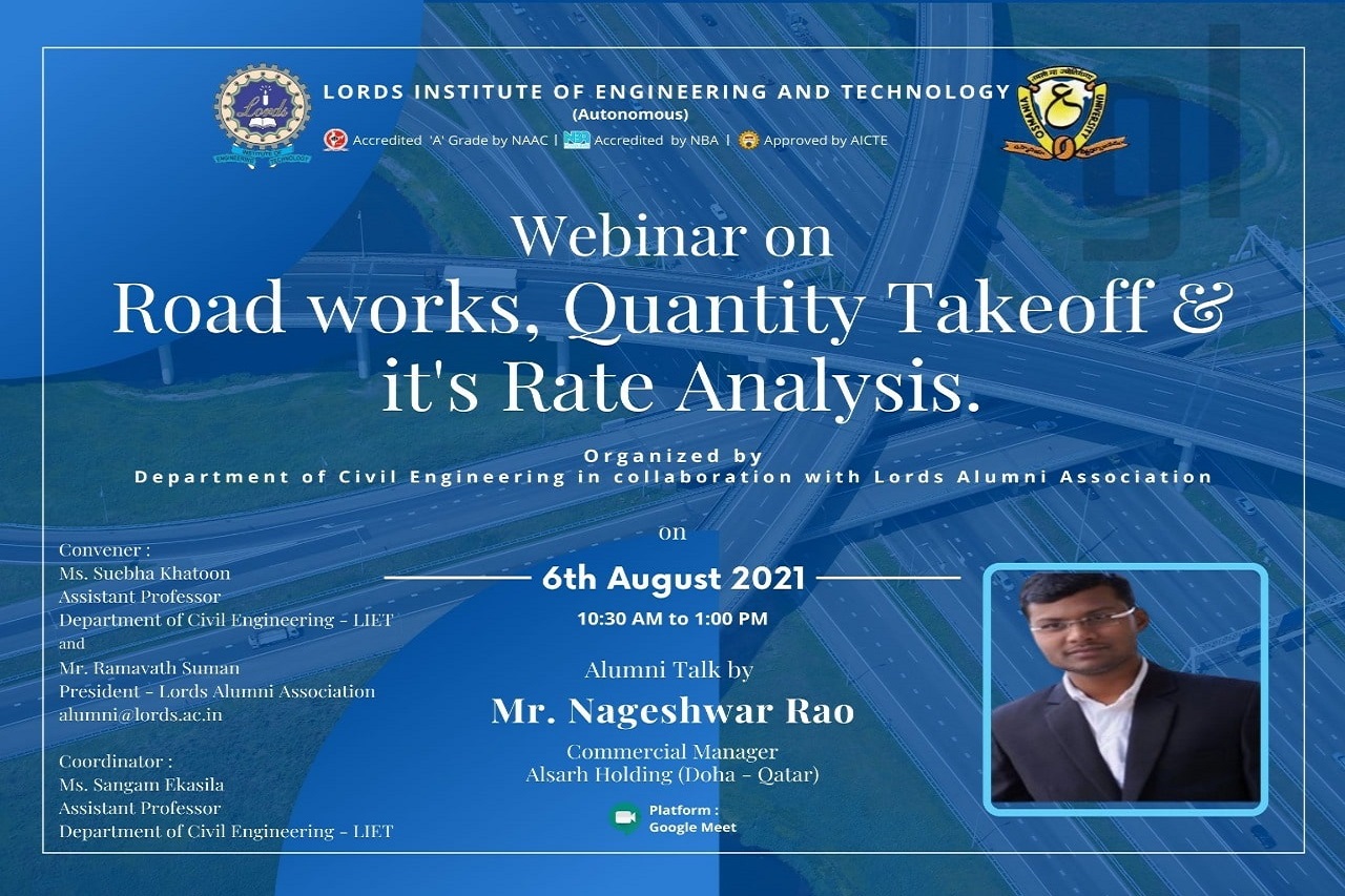 | 06-08-2021 | Road Works, Quantity Take off & it’s Rate Analysis | Mr. Nageshwar Rao, Commercial Manager, Alsarh Holding, Doha-Qatar |