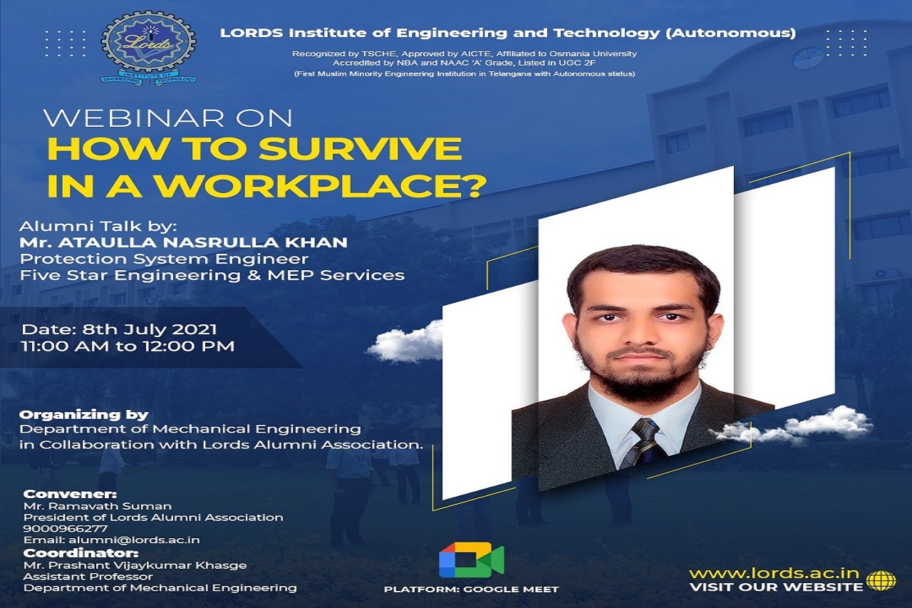 | 08-07-2021 | How to Survive in a Workplace | Mr. Ataulla Nasrulla Khan, Fire Protection System Engineer, Five Star Engineering and MEP Services |