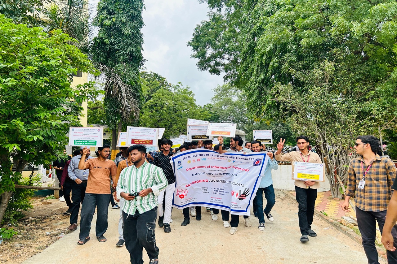 Description: Department of IT in association with NSS, LIET has organized an Anti -Ragging Awareness Program on 30/7/2025 to make students aware about the adverse scenarios of Ragging.Student Coordinators & Volunteers along with the faculty Coordinator have engaged themselves in creating awareness among the II,III & IV Year students of LIET. A rally was also Organized in this regard. The Convener of this program is Dr.K.Nagi Reddy, Dean Academics and HoD IT. Dr.J.Sasi Kiran, Dean First Year & NSS Coordinator had administered the Anti Ragging Oath and all students took the oath.This program was to Again make LIET a Ragging Free Campus.