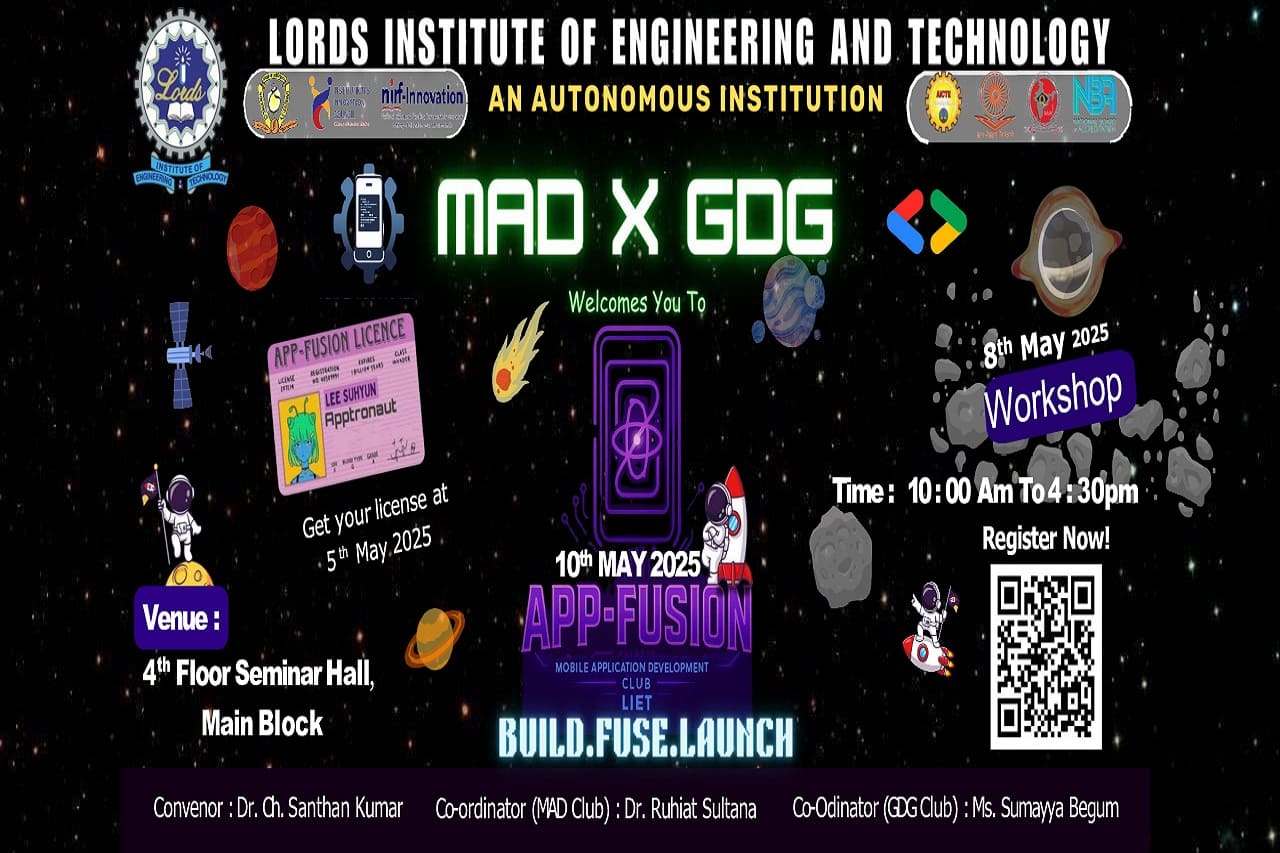 Description about the event (50 Words): The GDG and MAD Clubs jointly organized App-Fusion, a dynamic appathon focused on the UN’s Sustainable Development Goals (SDGs).The event kicked off on May 5th with an introductory session from 2:00 PM to 4:00 PM, briefing participants on rules, judging criteria, and collaboration strategies. The SDGs were introduced as the central theme, encouraging socially impactful app ideas.On May 8th, a hands-on mobile app development workshop attracted over 350 registrations. Expert sessions were led by Aarshad Devani (Firebase & cloud computing) and Khaja Fareeduddin (Flutter & GitHub).