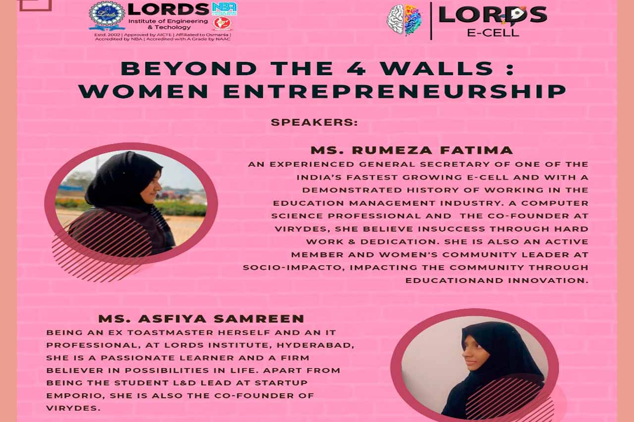 Events A webinar on Beyond the 4 walls:Women EDP admin August 19, 2020 Title: A webinar on Beyond the 4 walls:Women EDP Resource Person: Ms.Rumeza Fatima & Ms.Asfiya Samreen,Lords E-Cell Date: 19/08/2020 Department: Lords E-Cell ← A webinar on Powers of Mind Bio-Degradable Plastic Revolution →