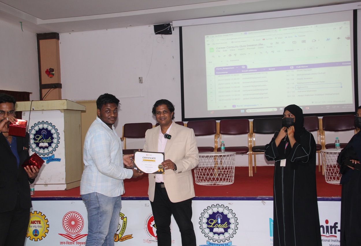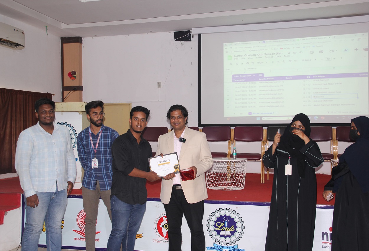 Description: Career Counseling and guidance cell conducted a seminar on “Career Development and Growth” on 28/07/25 at Mokshagundam Visvesvaraya Seminar Hall, LIET (A). Mr. Meneni Rohit Rao, Ceo of Career Consultz was the guest engaging seminar focused on career guidance. Emphasizing the importance of making informed decisions when choosing a career, we discussed how various assessments like IQ, EQ, and personality tests can be valuable tools in understanding one’s strengths and preferences. We also covered opportunities related to overseas education and employment, providing students with a broader perspective on global career prospects