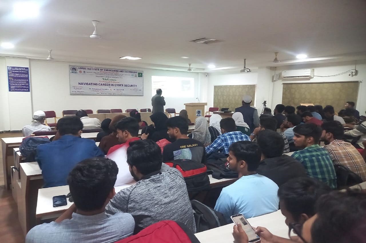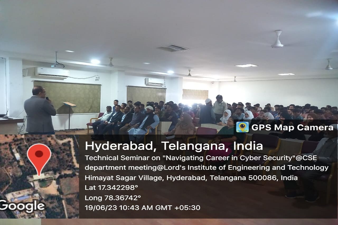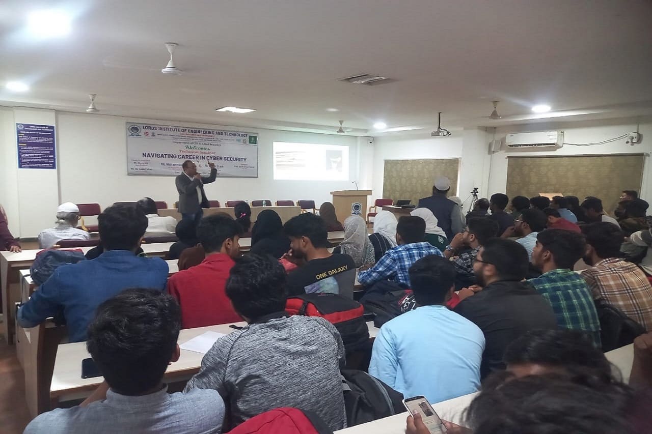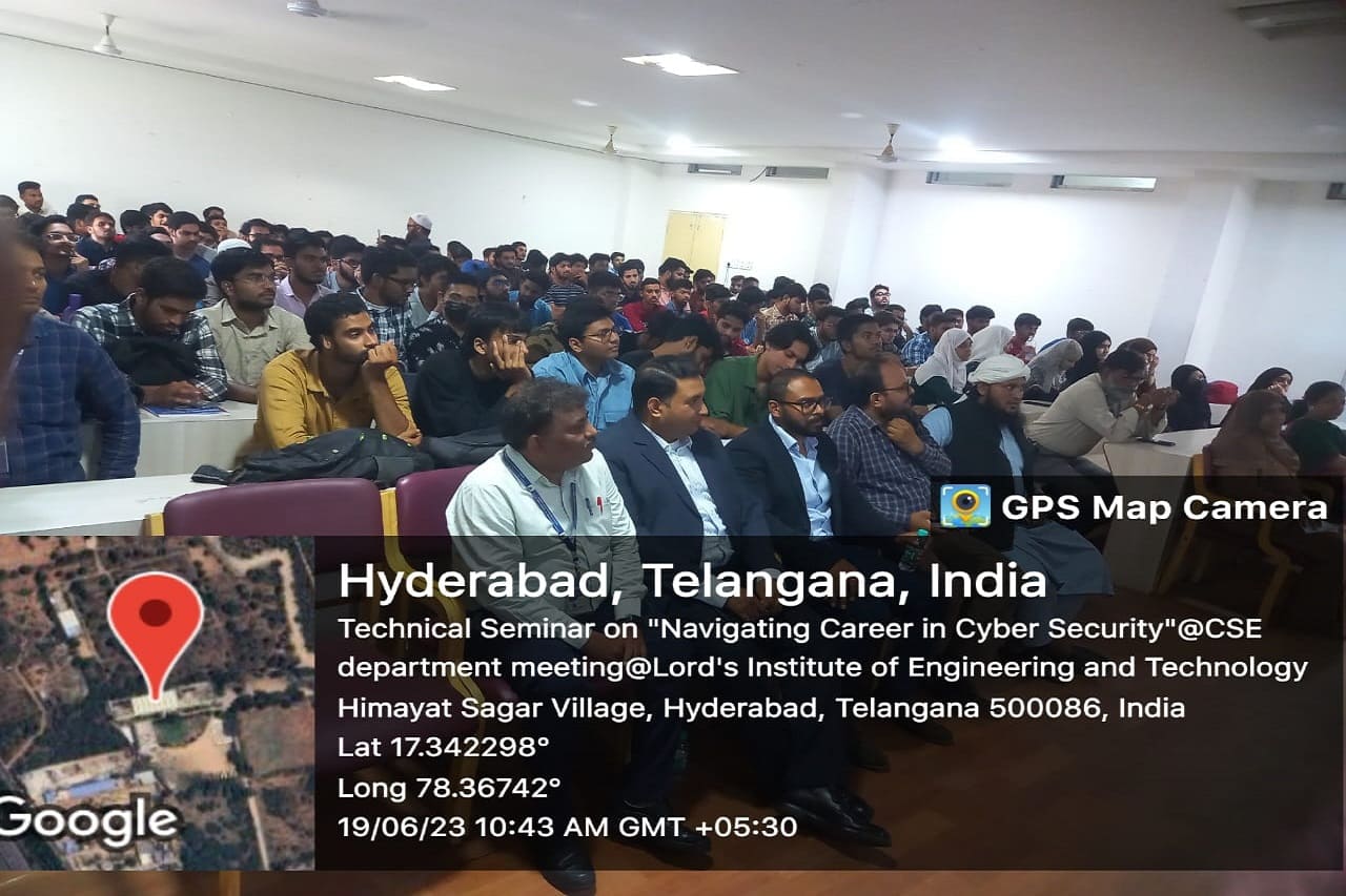 Department of CSE and allied branches conducted Technical Seminar on “Navigating Career In Cyber Security”, sponsored by management for the students of 3 rd year cse.The speaker, Mr. Mohammed Rafi Chief Information Security officer, Columbus IT services, along with Mr Ayub Shaik, Founder & CEO of Huntmetrics Pvt. Ltd., engaged the session. The session started with the importance of Cyber security profession, career in Cyber Security and also Entrepreneurship. They motivated students with the exciting work challenges in this domain, opportunities and right path to choose this domain. They introduced and offered various skill development courses to acquire knowledge and training in the domain . Students got motivated with the session and students were given insight into different testing tools. The job market is discussed along with level of jobs can be offered for their career . It is a useful and a motivating session. It helped students to shape their career in Cyber Security. The lecture ended with a Q&A session in which students posed different queries which were satisfactorily answered by the speaker.