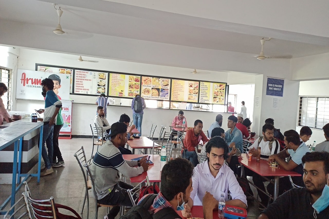 In addition to the Academic Facilities, the campus also houses a Hygienic and Spacious Canteen. The food is certified by a Food Safety Inspector and caters to the needs of our students. A seating capacity of 500 students at a time is available in the Canteen. The canteen is open from 9:00 AM to 6:00 PM and closed during the College Academic Hours.