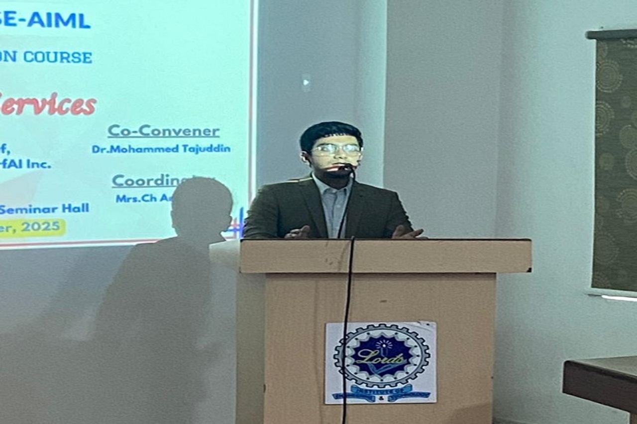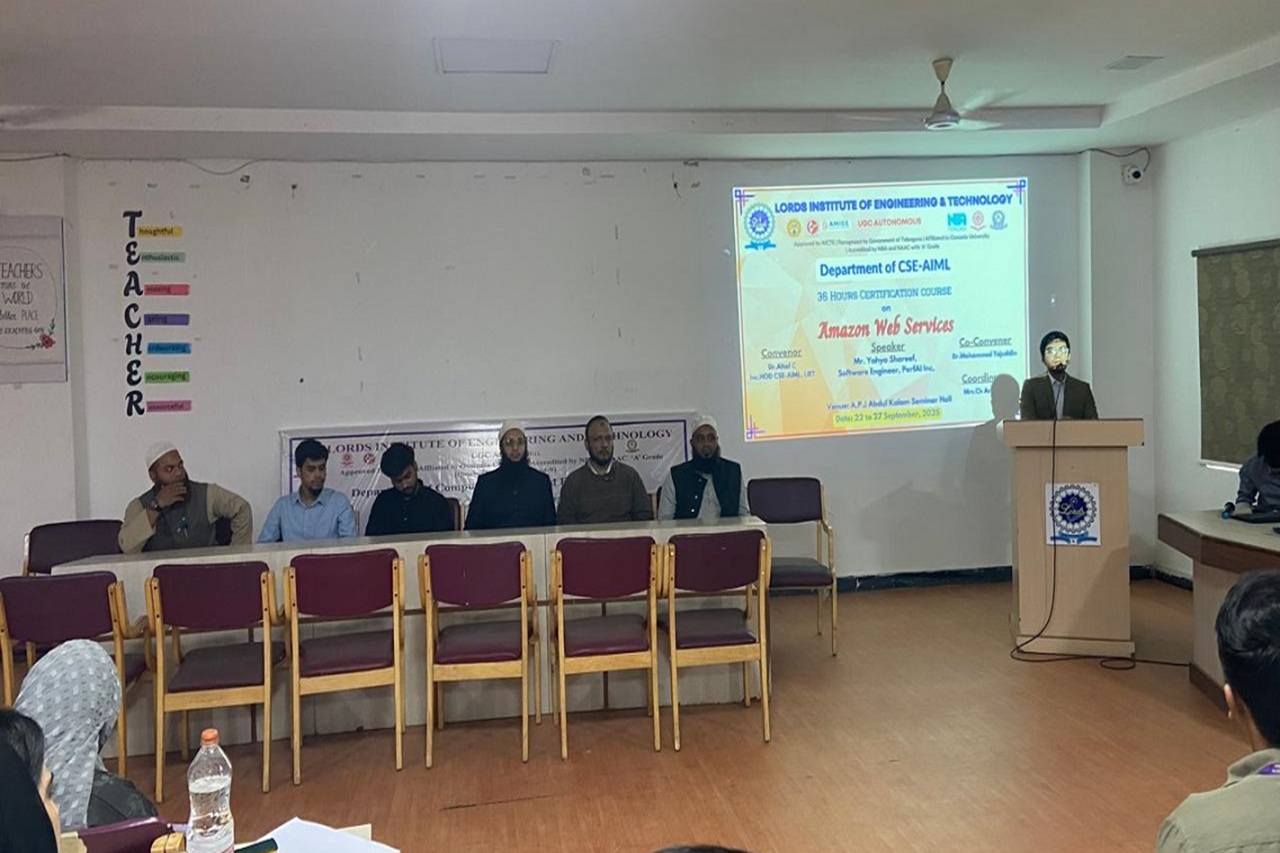 Description:The Department of CSE–AIML conducted a comprehensive Amazon Web Services (AWS) 36-Hour Certification Course from 22nd to 27th September 2025 at the APJ Abdul Kalam Seminar Hall [2nd Floor]. The course was coordinated by Ms. Aradhana CH and featured Mr. Yahya Shareef as the resource person. Mr. Shareef, with his expertise in cloud computing, guided the students through the essentials of AWS, sharing valuable insights and practical knowledge.