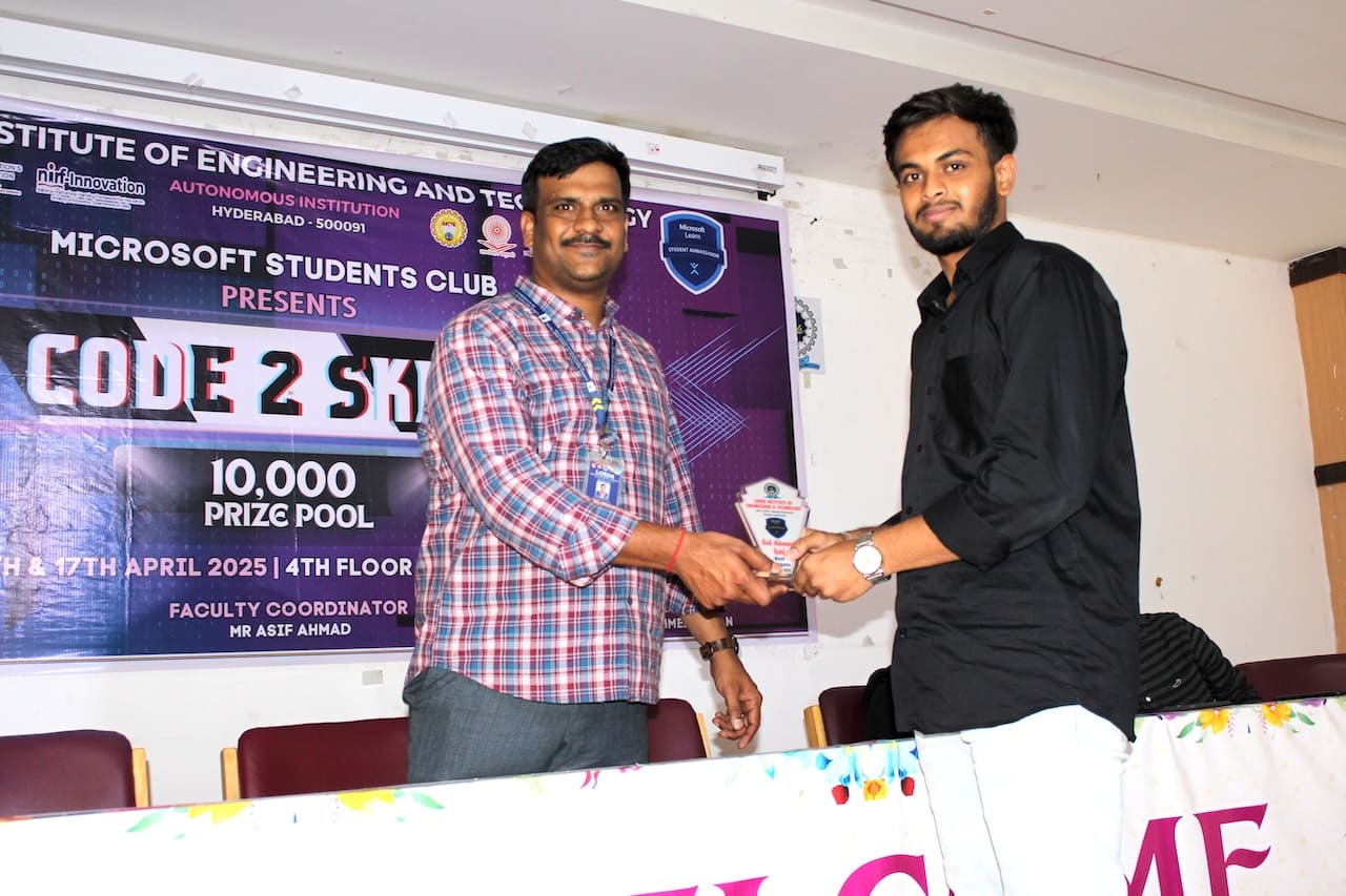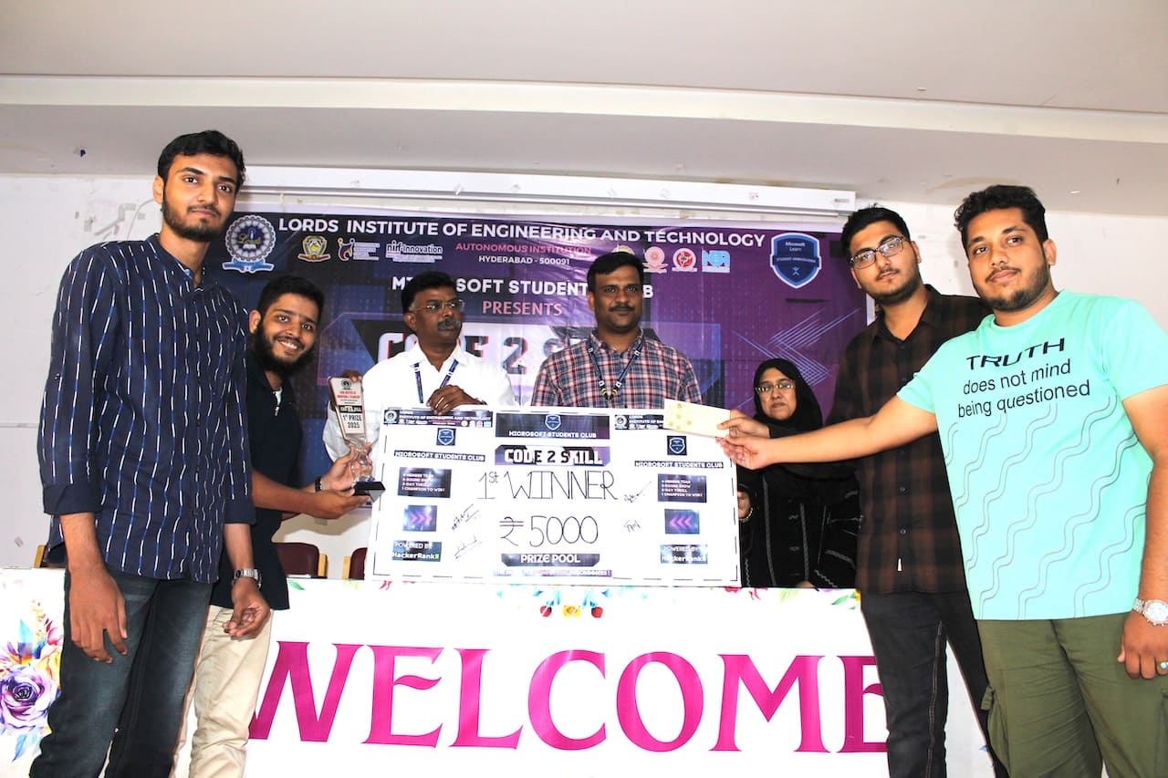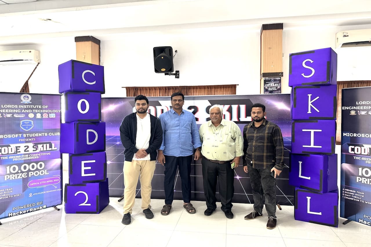Description: The Microsoft Student Club at LORDS Institute of Engineering and Technology (A) hosted “Code 2 Skill competition” powered by HackerTanker, on 16th and 17th April, 2025. It was a high-energy, 2-day coding competition that saw enthusiastic participation from over 220 students. The contest featured three exciting rounds — Tech Quiz, Code Debugging, and Competitive Programming. A total prize pool of ₹10,000 was announced, with the first prize of ₹5,000 awarded to the winning team from CSE-AIML, based on their outstanding performance.