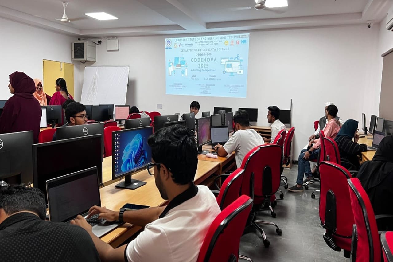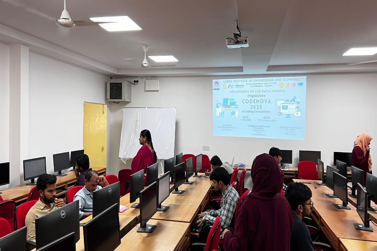 Description: CODENOVA 2K25 is a coding competition organized by the Department of CSE-Data Science at Lords Institute of Engineering and Technology. The event aims to challenge students’ programming skills and problem-solving abilities through competitive coding tasks. Participants will have the opportunity to showcase their talent and win exciting rewards.