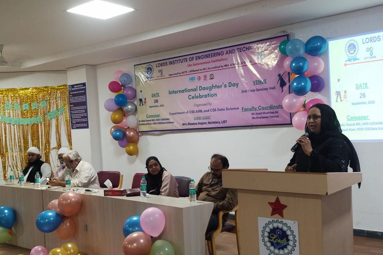 Description: Department of CSE-AIML and CSE-Data Science celebrated International Daughter’s Day at Lords Institute of Engineering and Technology(A) on September 26, 2023. It was a heartwarming and joyous occasion, bringing together students, faculty, and staff to honor and appreciate the wonderful daughters within our community