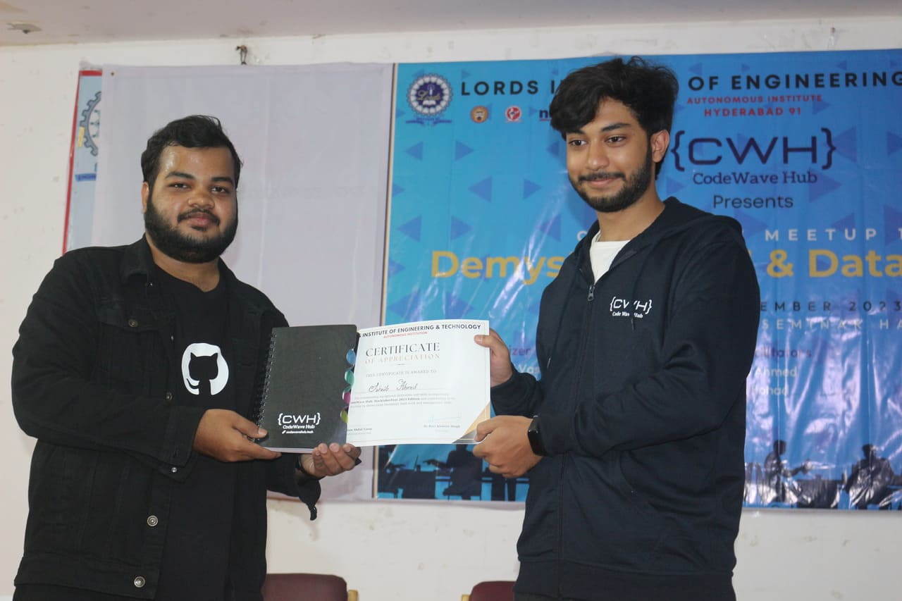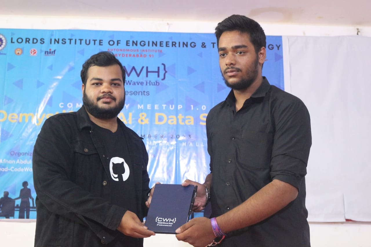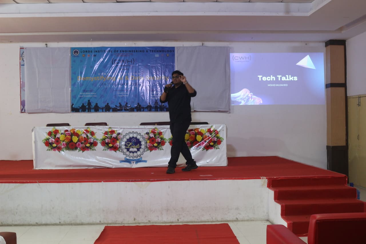 The CodeWave Hub at Lords Institute of Engineering and Technology(A) organized a dynamic Meetup focusing on “Demystifying AI & Security” on November 18, 2023. A notable turnout of 200 students enriched the event’s vibrancy. Renowned speakers from the field of CSE-AIML graced the occasion, providing unparalleled insights. The lineup included S.K. Fareeduddin, Mohd Mujahid, Asfia Al Hera, and Maria Erum. Their expertise shed light on the intersection of AI and security, making the event an enriching experience.