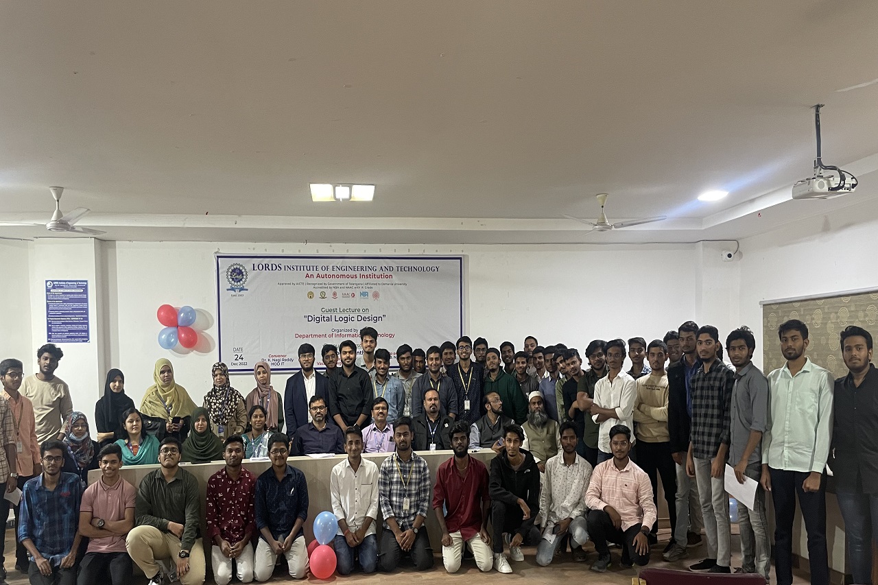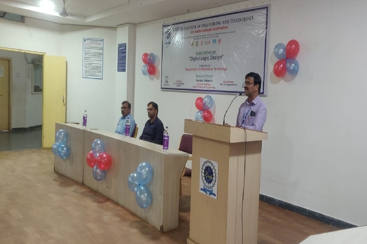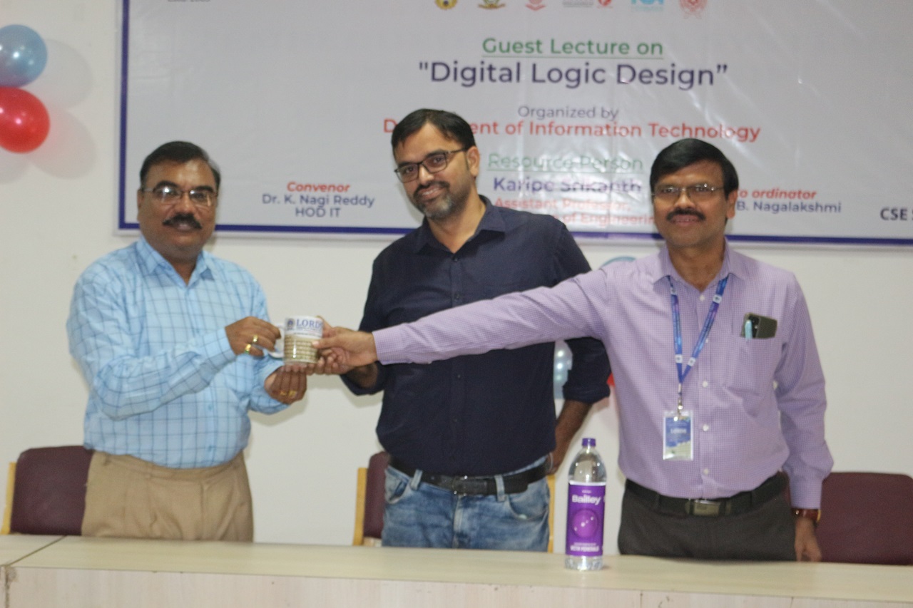 Description: The Department of Information Technology at Lords Institute of Engineering has conducted a Guest Lecture on “Digital Logic Design” for B.E. II Year students. The resource person for the Guest Lecture was Mr. Karipe Srikanth, Assistant Professor, Vasavi College of Engineering, Hyderabad. The event was graced by the Convener & HOD –IT, Dr. K. Nagi Reddy and Dr. C. V. Narsimhulu, Principal, LIET along with Mr. Karipe Srikanth. Students have expressed their happiness that the department has conducted a Guest Lecture on such an important topic which will help students in their academics
