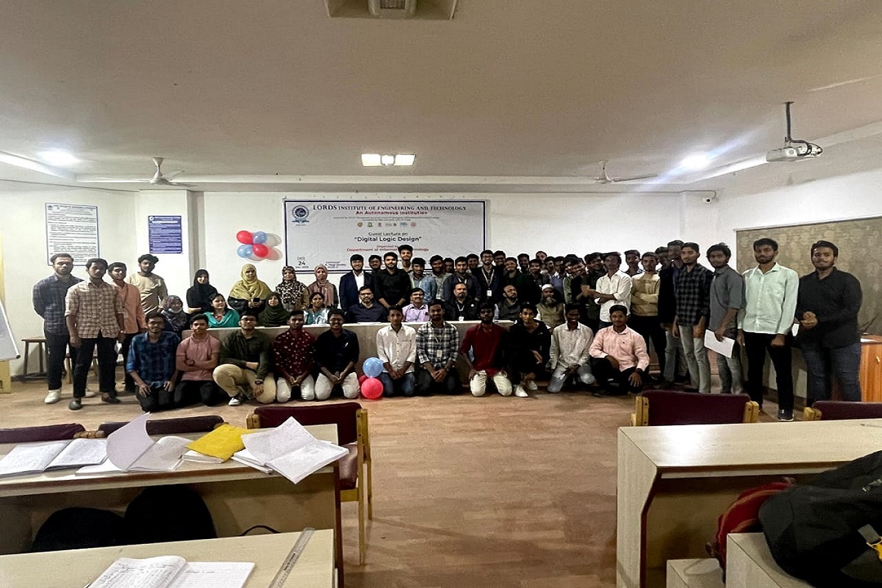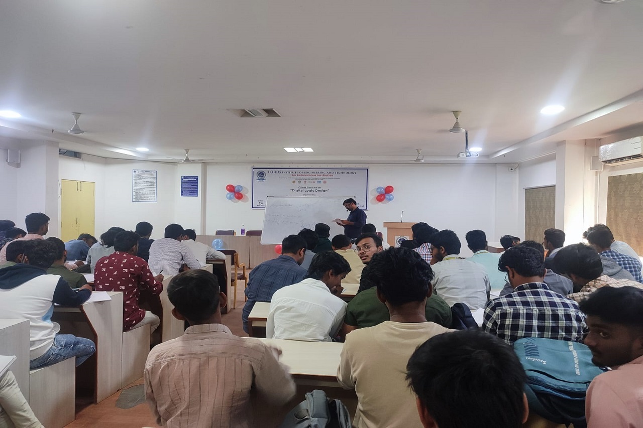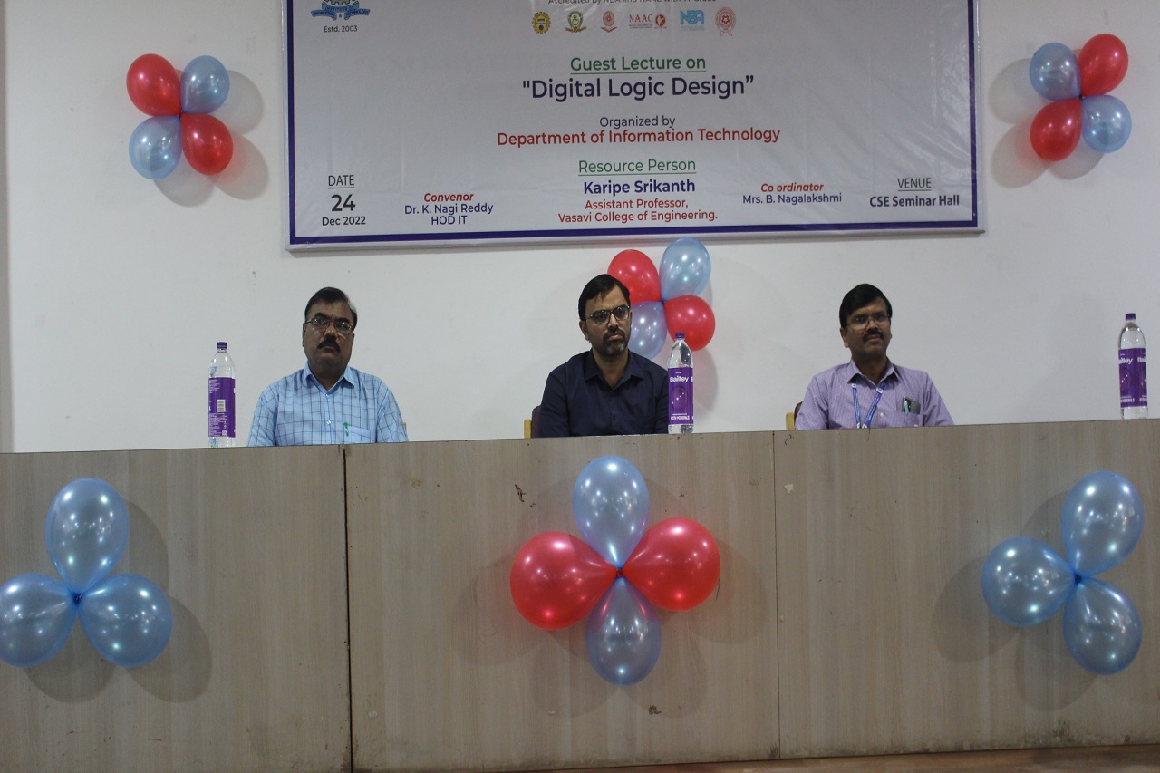 Description: The Department of Information Technology at Lords Institute of Engineering has conducted a Guest Lecture on “Digital Logic Design” for B.E. II Year students. The resource person for the Guest Lecture was Mr. Karipe Srikanth, Assistant Professor, Vasavi College of Engineering, Hyderabad. The event was graced by the Convener & HOD –IT, Dr. K. Nagi Reddy and Dr. C. V. Narsimhulu, Principal, LIET along with Mr. Karipe Srikanth. Students have expressed their happiness that the department has conducted a Guest Lecture on such an important topic which will help students in their academics