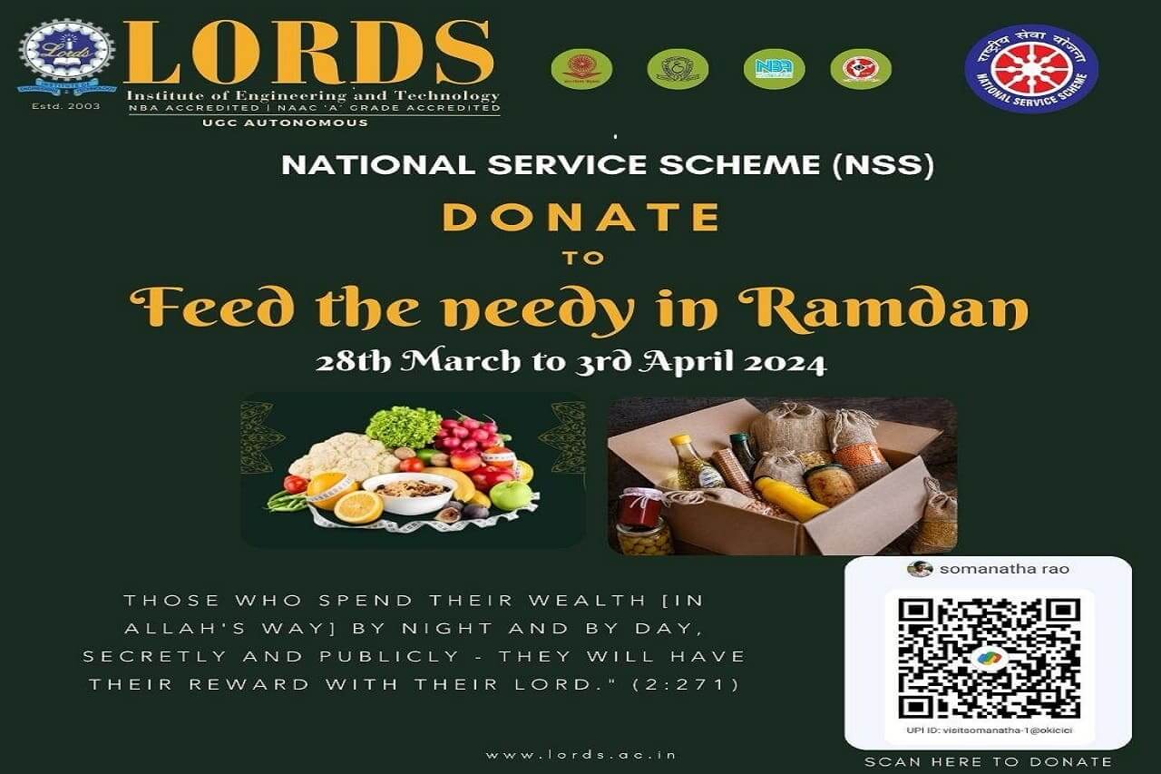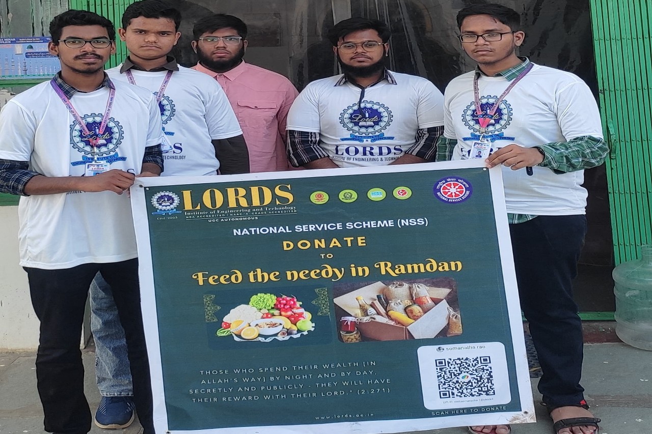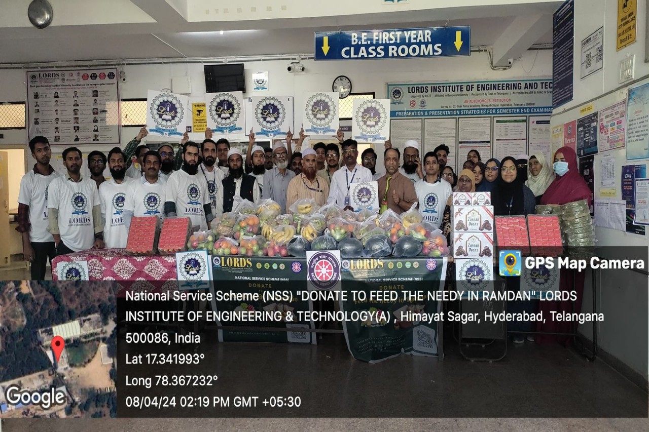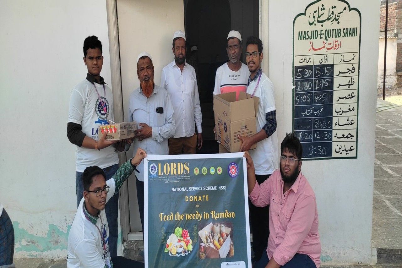 Description: The National Service Scheme (NSS) of Lords Institute of Engineering and Technology organized the distribution of Iftari to fasting community members across the city. Donation collection boxes were placed in the main building and first-year block from March 28th to April 3rd, 2024, along with the option for online payments via QR code. Numerous students and faculty members participated in this initiative, contributing generously.