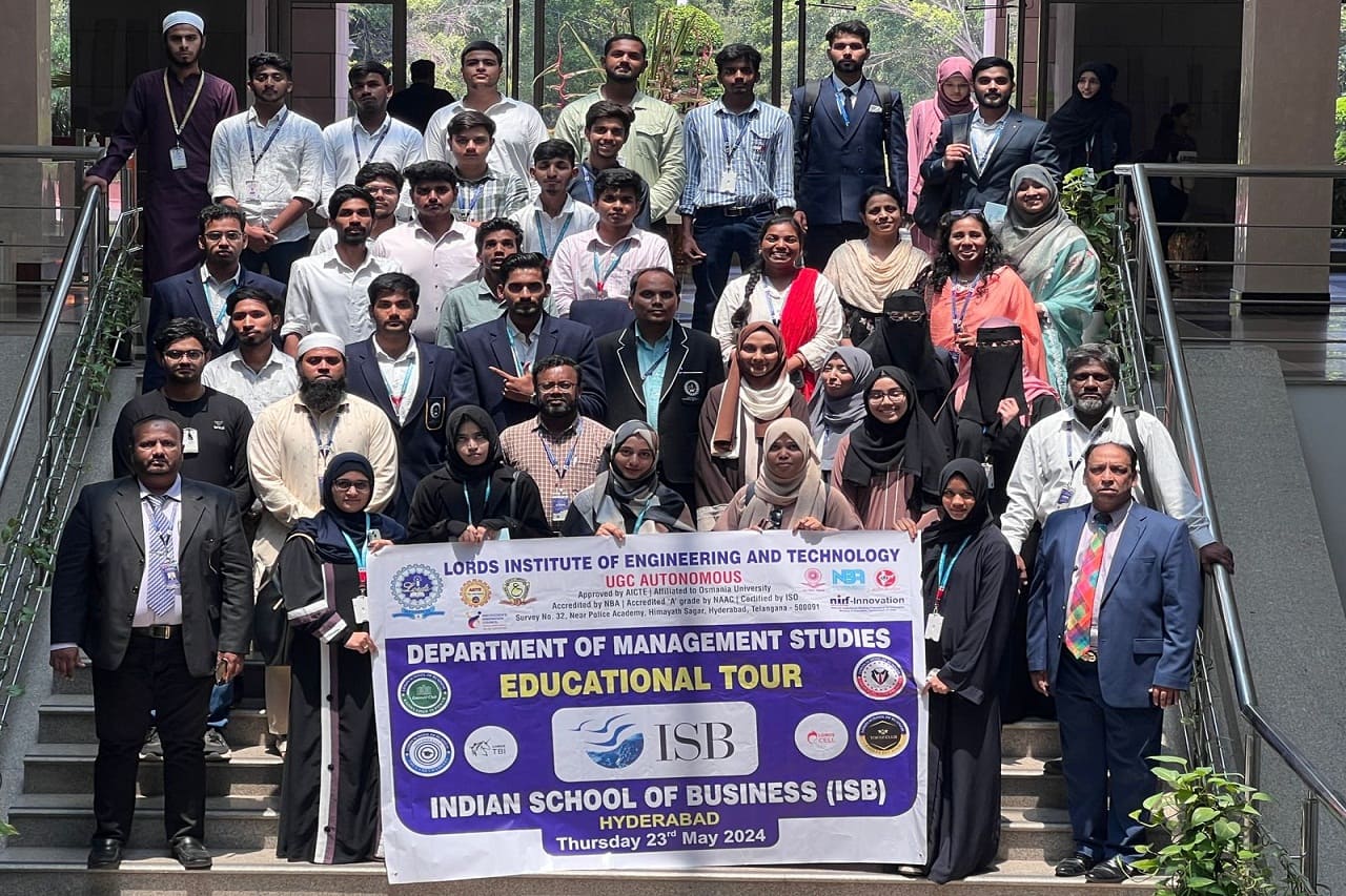 Description about the event (50 Words): Lords MBA Students Gain Insight at Indian School of Business On May 23rd, 2023, Lords MBA students had the privilege of visiting the prestigious Indian School of Business (ISB), globally recognized as one of the top-ranked business schools and India’s number one. This educational tour offered a remarkable opportunity for Lords students to experience firsthand the academic excellence and innovative practices that have established ISB as a leader in business education.During the visit, students were introduced to the current batch demographics, showcasing a diverse and balanced cohort with 47% female and 53% male students. A highlight of the day was an engaging Q&A session that underscored the importance of case study methodology and outcome-based education, alongside ISB’s stringent honor code in examinations.The session also shed light on the entrepreneurial success of ISB alumni, with 12 Indian and global unicorns credited to their graduates, emphasizing the school’s outstanding contribution to entrepreneurship.Following the orientation and a tour of the extensive library, students enjoyed refreshments, tea, and coffee, providing an opportunity for self-reflection and a deeper appreciation for raising the bar of excellence in their own academic and professional pursuits.Additionally, the students gained valuable insights into the process of availing scholarships and preparing for GMAT/GRE entrance exams, essential steps for planning postgraduate certification programs at ISB.In a gesture of gratitude, the Lords team presented mementos to the ISB Educational Tour organizers, expressing their heartfelt thanks and extending an invitation for the ISB team to visit the Lords Campus.This enlightening experience has undoubtedly inspired Lord’s MBA students to strive for excellence and consider the possibilities of advanced studies at ISB, setting a higher benchmark for their future endeavors.
