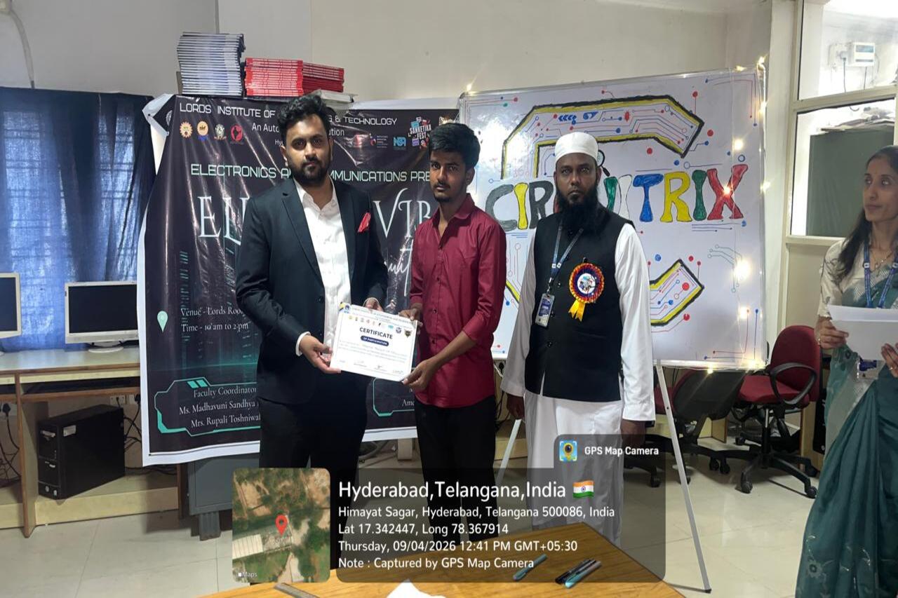 • First Place – Team: HIVE, CSE, LIET – Trophy and Certificate