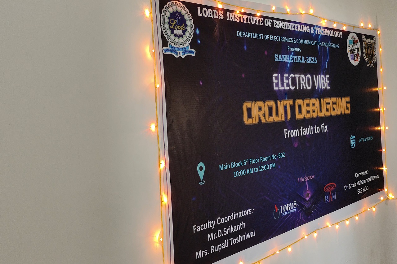 The Department of Electronics and Communication Engineering (ECE) organized a National Level Technical Event titled SANKETIKA 2K25 – ELECTROVIBE on April 24th and 25th, 2025, attracting a total of 168 participants. The event featured a range of technical and non-technical activities.