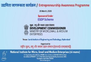 Description: Lords Institute of Engineering & Technology successfully conducted a 5-day Management Development Program (MDP) and a one-day Entrepreneurship Awareness Program (EAP) in collaboration with the National Institute for Micro, Small and Medium Enterprises (NIMSME).The MDP focused on helping students understand how businesses can reduce waste, improve efficiency, and create value using circular economy concepts. Over the five days, participants learned practical methods, engaged in activities, and explored real-world business examples. The EAP session was delivered by Dr. Manisha Kumari, CAO, NIMSME, who shared valuable insights on entrepreneurship, startup opportunities, and government support systems.Overall, these programs helped students gain practical knowledge, develop a new perspective on business, and explore entrepreneurship as a potential career option.