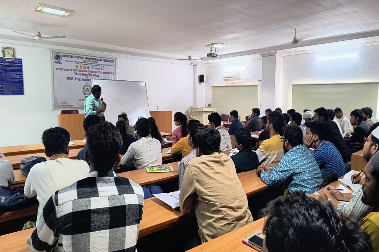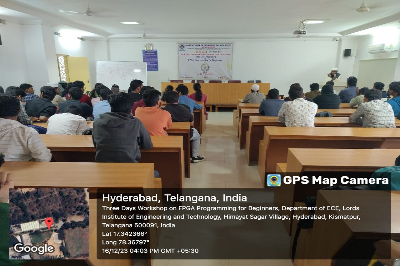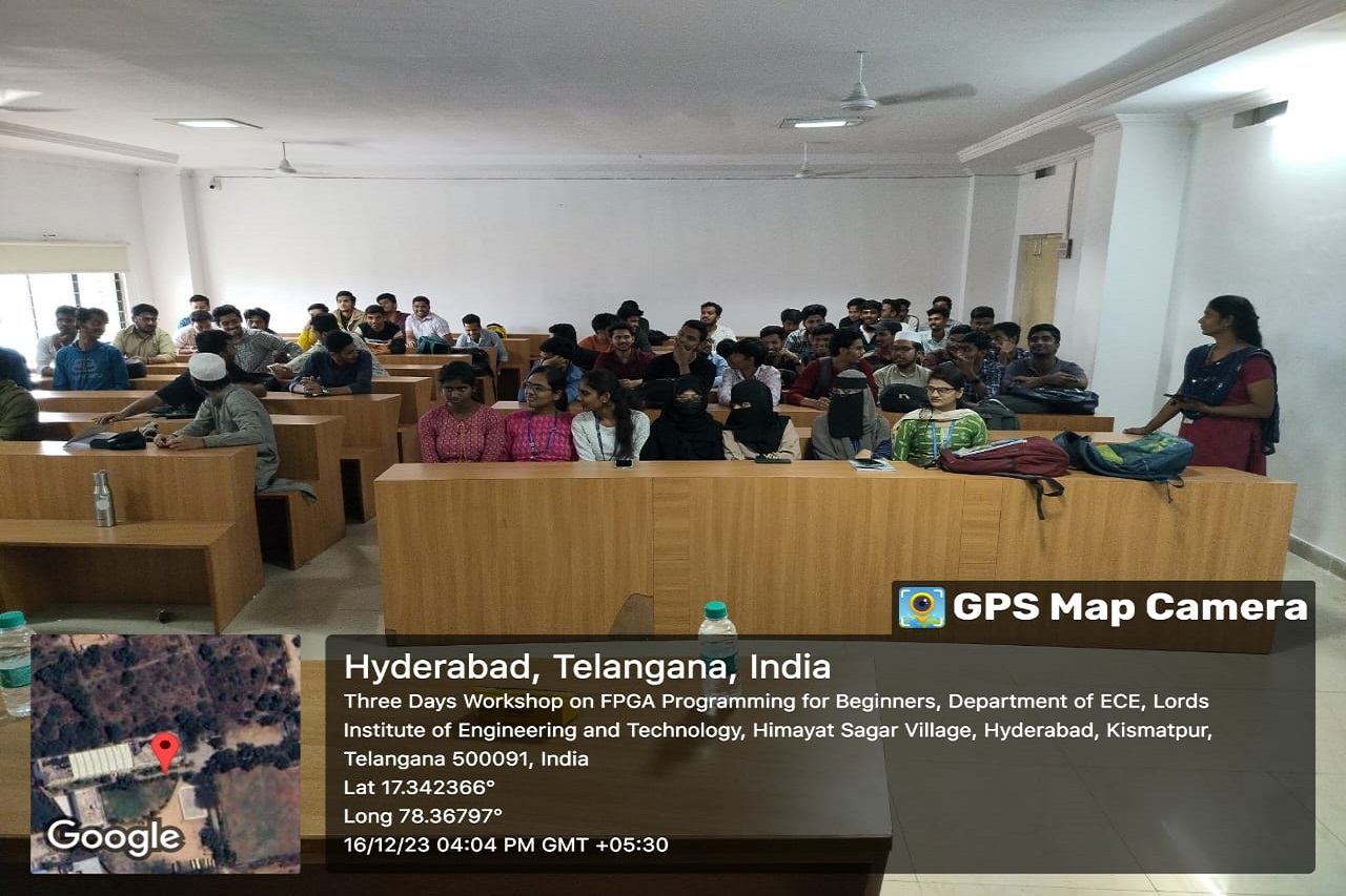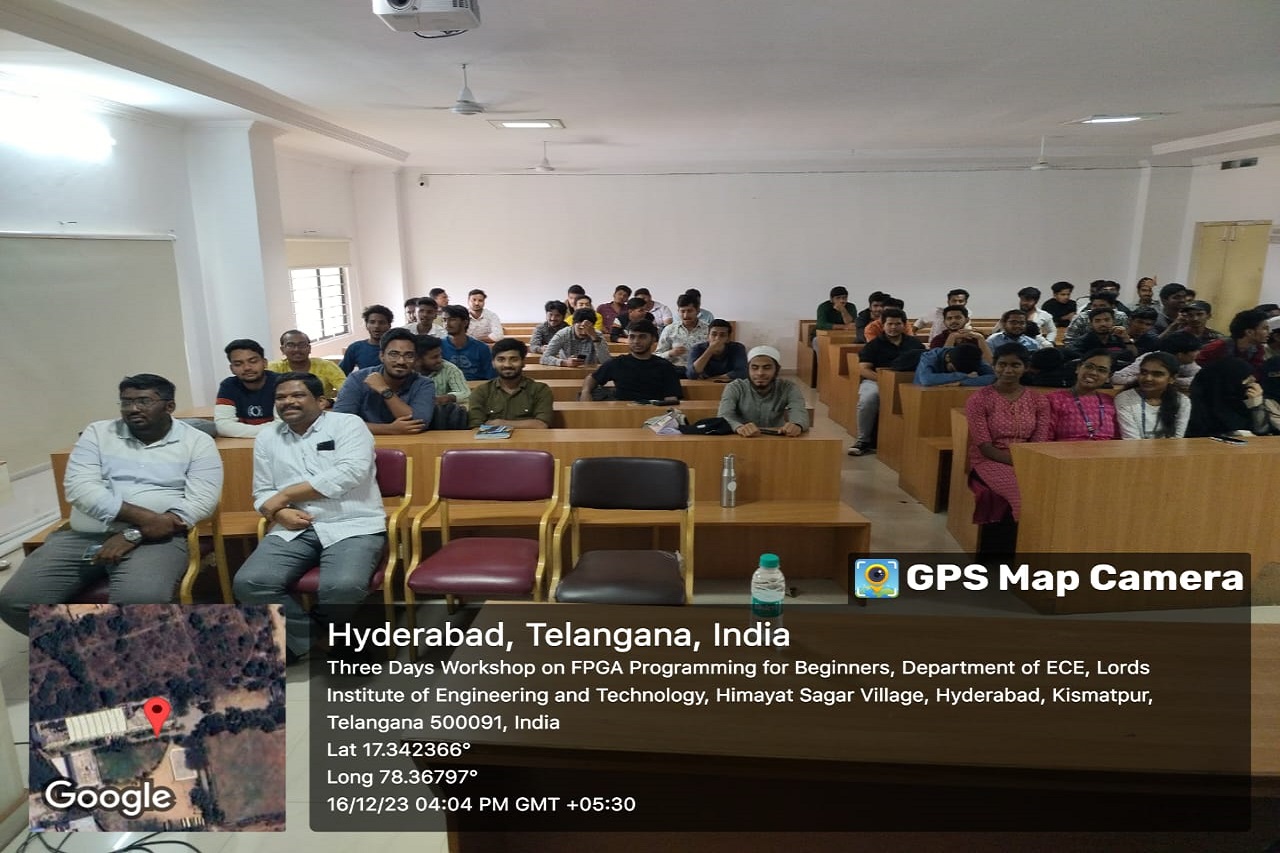 Description about the event (50 Words): The Department of ECE at Lords Institute of Engineering and Technology(A) conducted a three Days Workshop on FPGA programming for Beginners from 14th – 16th December 2023. A Total of 65 students actively participated in this event. Students got practical knowledge from this event.Dr. Bala, Technical Manager from Techfluent enlightened our students with his knowledge towards programming