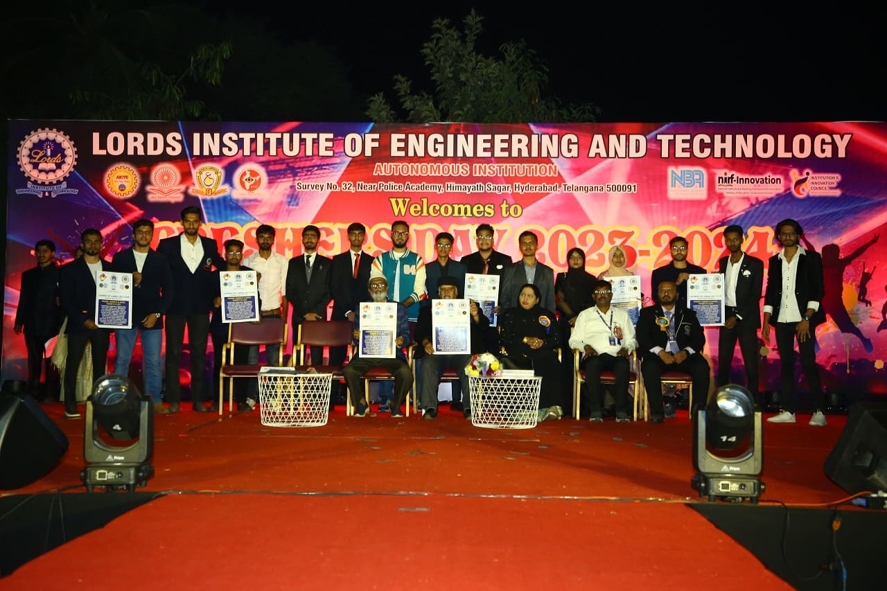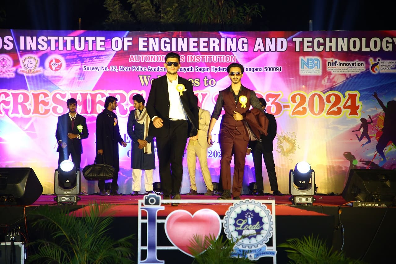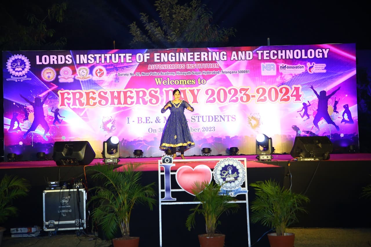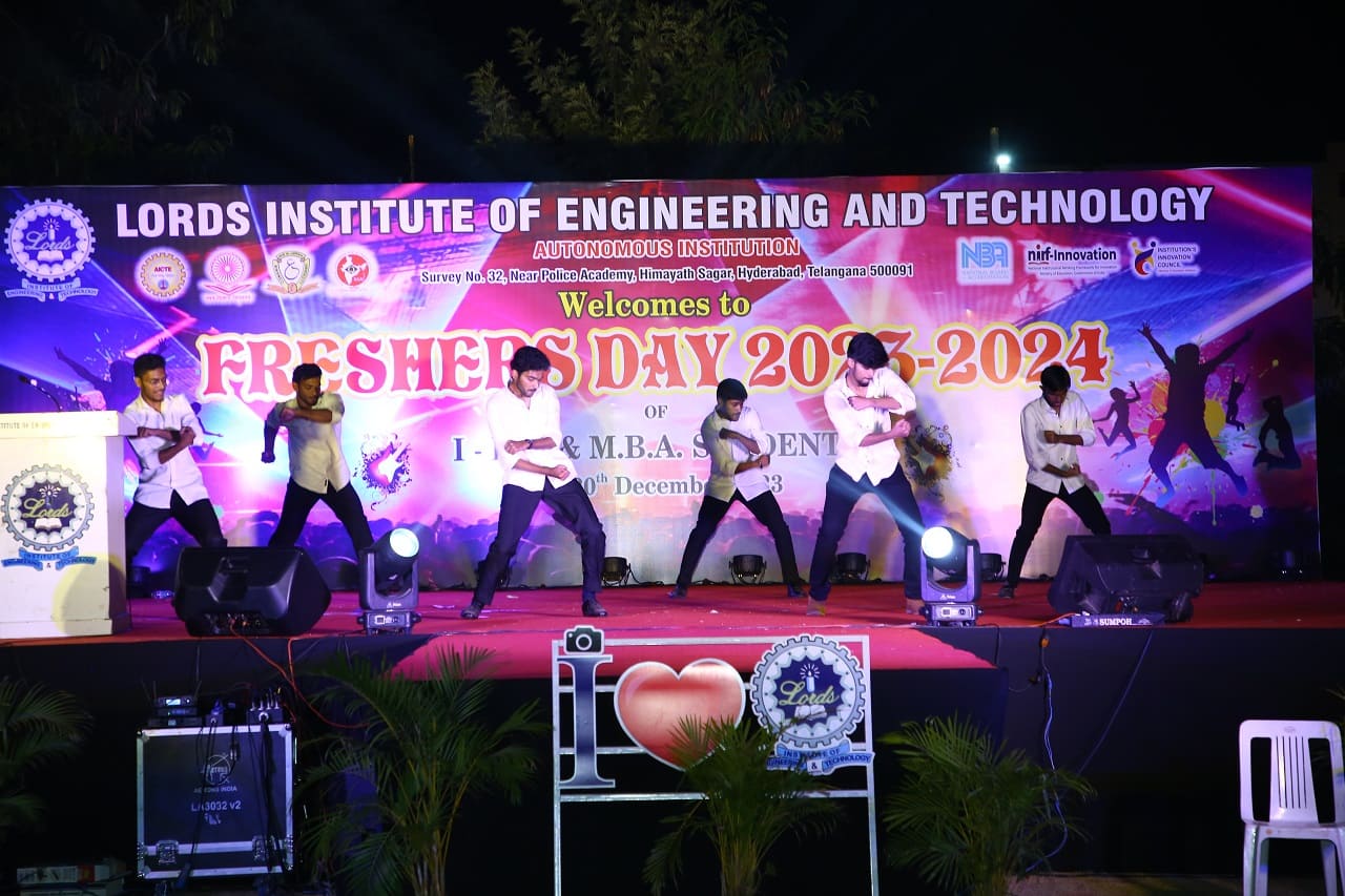 “Lords Institute of Engineering and Technology(A) joyously celebrated the Fresher’s Day for the B.E & MBA students of the 2023-24 batch on December 30, 2023, starting from 3:00 pm at the campus. The event was filled with vibrant cultural performances, including dance, singing, shayari, skits, and qawwali, showcasing the talent of both senior and junior students. A highlight of the day was the ramp walk, where the freshers confidently showcased their best outfits and accessories, leading to the selection of Mr & Ms Fresher. The event also featured the awarding of prizes for the winners and runner-up teams of the Youth Sports Fest 2023, recognizing achievements in both indoor and outdoor games. The program witnessed enthusiastic participation with over 1000 I-B.E & MBA students in attendance.”
