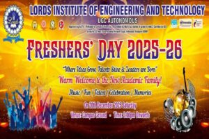 Description: The Arts & Cultural Cell of Lords Institute of Engineering and Technology celebrated Fresher’s Day with great enthusiasm on 20th December, 2025 at the campus ground. The event witnessed the more than1100 students and faculty members, making the celebration grand and memorable. The program featured lively music, vibrant cultural performances, and impressive talent showcases by students. The celebration beautifully reflected unity, creativity, and leadership, leaving everyone with cherished memories.