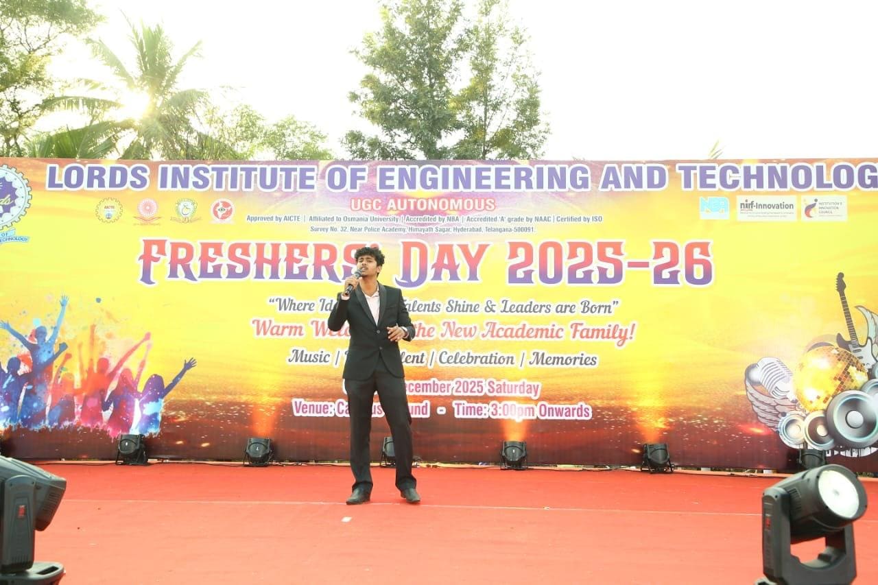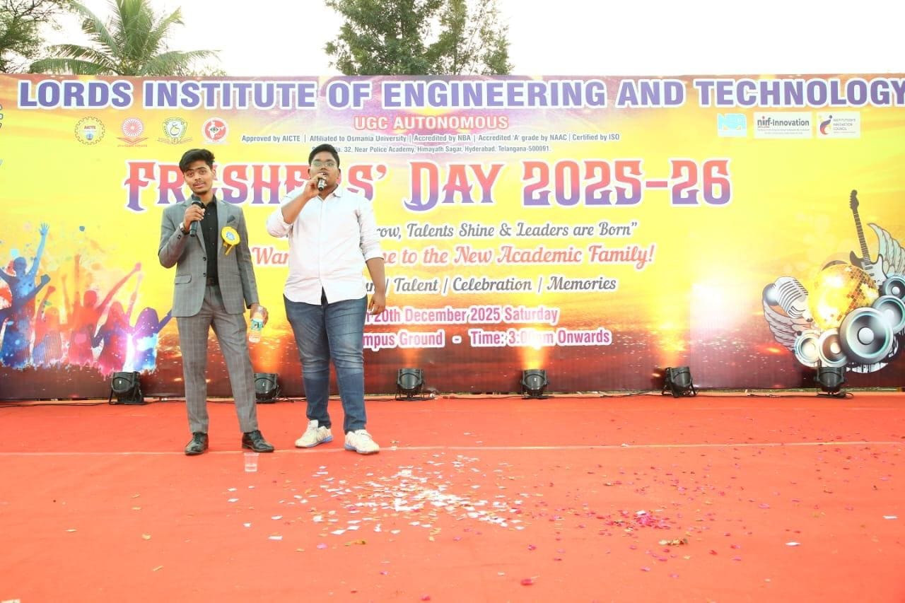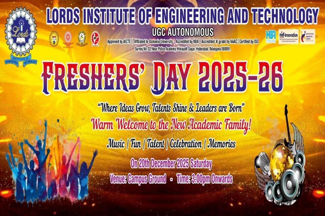 Description: The Arts & Cultural Cell of Lords Institute of Engineering and Technology celebrated Fresher’s Day with great enthusiasm on 20th December, 2025 at the campus ground. The event witnessed the more than1100 students and faculty members, making the celebration grand and memorable. The program featured lively music, vibrant cultural performances, and impressive talent showcases by students. The celebration beautifully reflected unity, creativity, and leadership, leaving everyone with cherished memories.