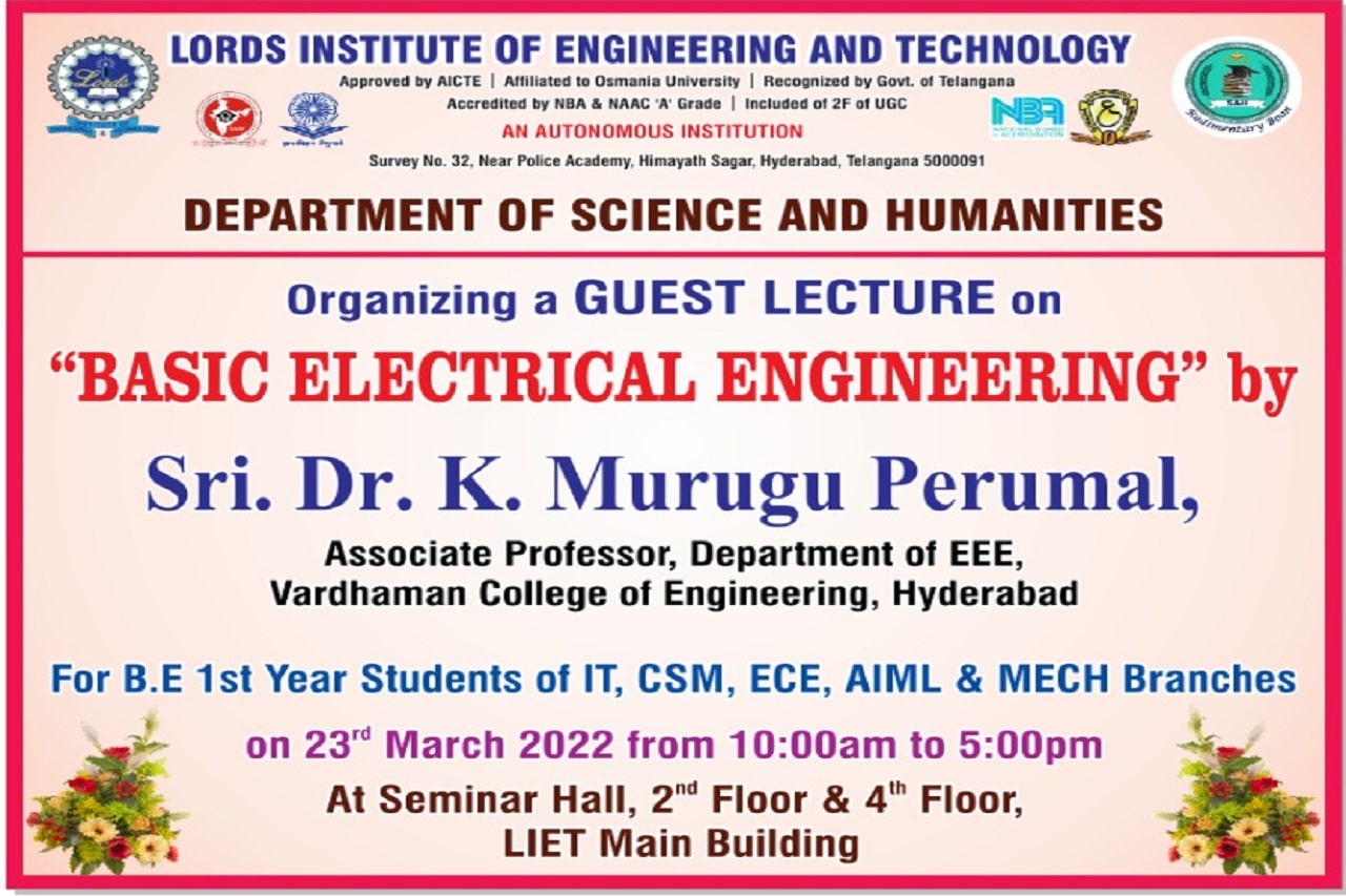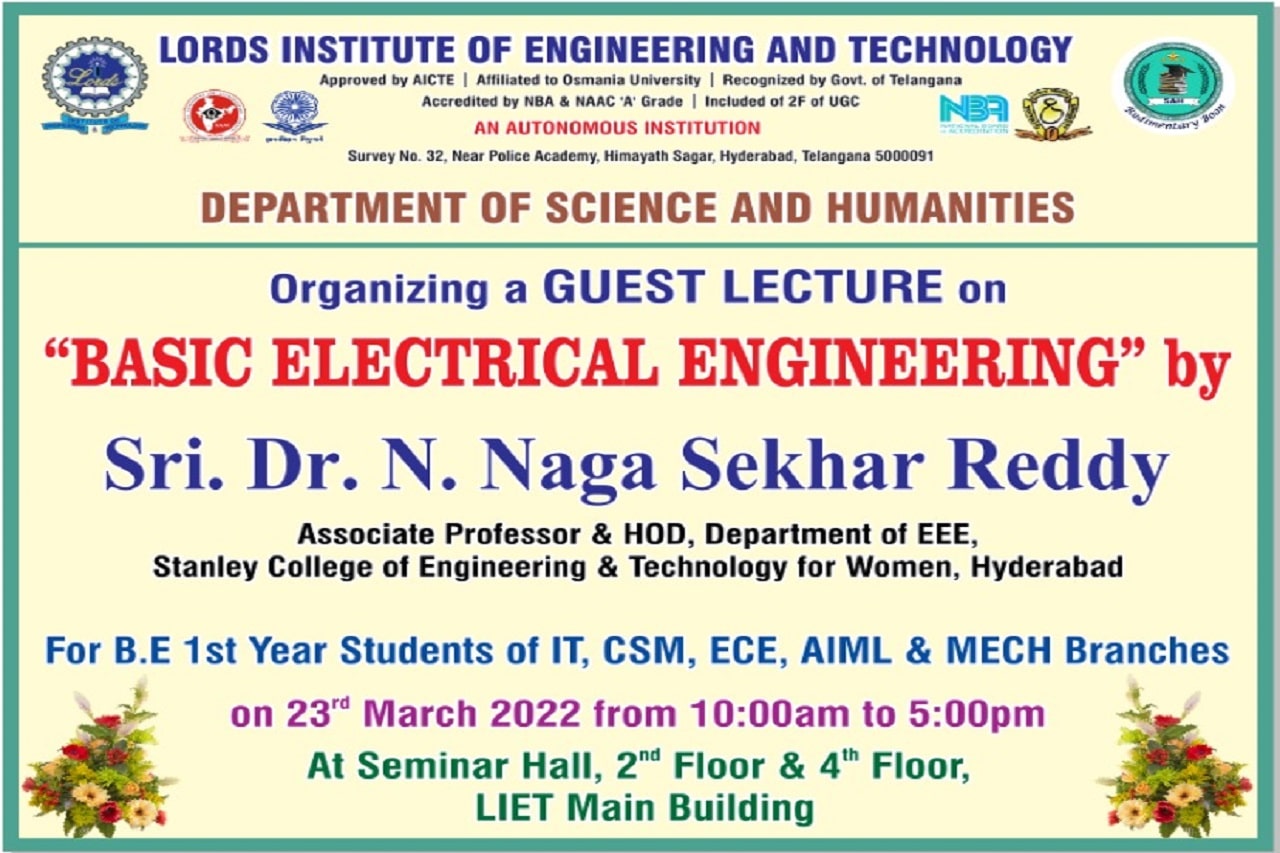 Chief Guest: Dr. N. Naga Sekhar Reddy, Associate Professor & HoD(EEE), Stanley College of Engineering & Technology for women