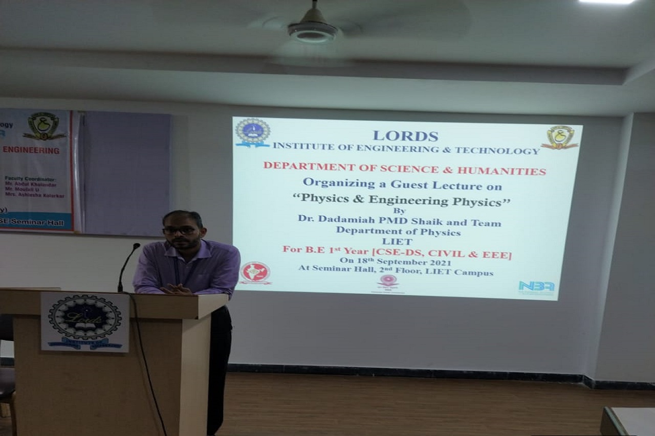 Events Guest Lecture on Engineering Physics admin September 19, 2021 Name of Event : GUEST LECTURE Title of Event : Engineering Physics Resource person: Dr. Dadamiah PMD Shaik Date:18-09-2021 No.of participants: 50 TIME & Venue: 2.30pm, CSE Seminar Hall ← Guest Lecture on Signals & Systems Guest Lecture on Chemistry →