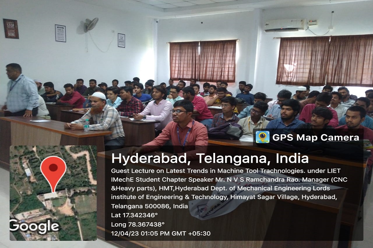Description about the event (50 Words): A Guest lecture was conducted on “Latest trends in machine tool technologies” in Mechanical Engineering Dept. on 12-04-2023. and around 63 students attended this session and benefitted. It was very helpful and useful for students to gain knowledge abiout insdutries and the speaker was very excellent and addressed the gathering in an innovative way. The speaker had good knowledge and well practical experience in industries and explained in friendly way.