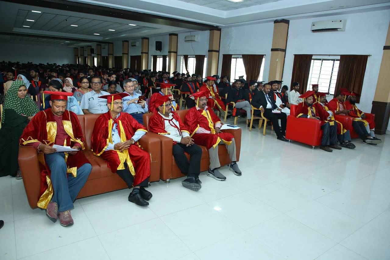 Principal Dr. C.V. Narasimhulu welcomed the students for the graduation day.He took an oath from the students to be sincere and loyal in their profession and to the motherland.Many students shared their memorable journey of four years.Students who excelled in the examination has been felicitated with certificates.The chairman,emphasised on self employability skills and creating more jobs for others. Vice-chairman, Secretary and Joint Secretary congratulated all the students and opined to be sincere in their work, honest with their profession and not misusing their degree.All the Deans, HODs and Faculty members attended the programme.The program concluded with Vote of thanks proposed by Dr.EVR Rao,HOD,Civil Department.