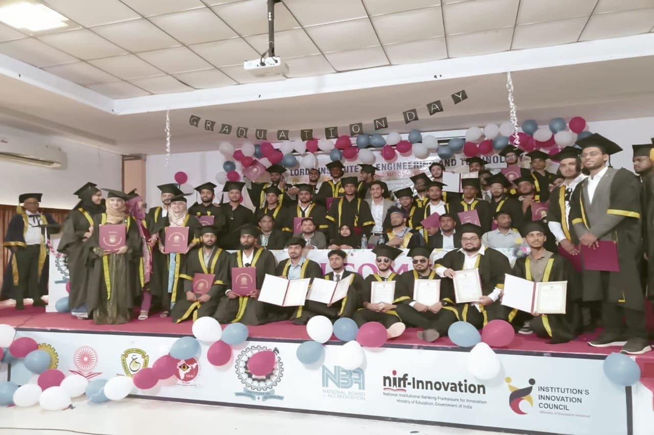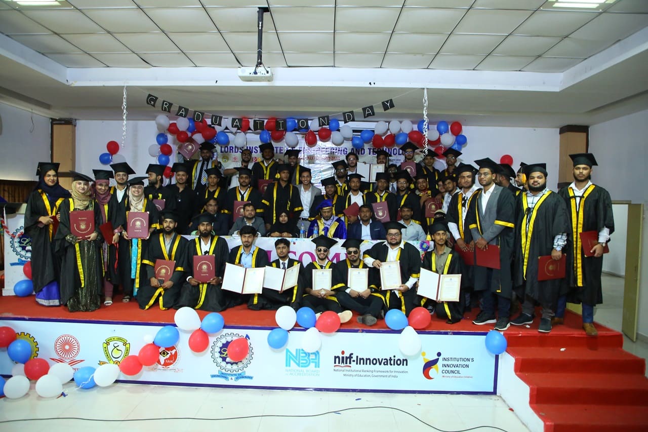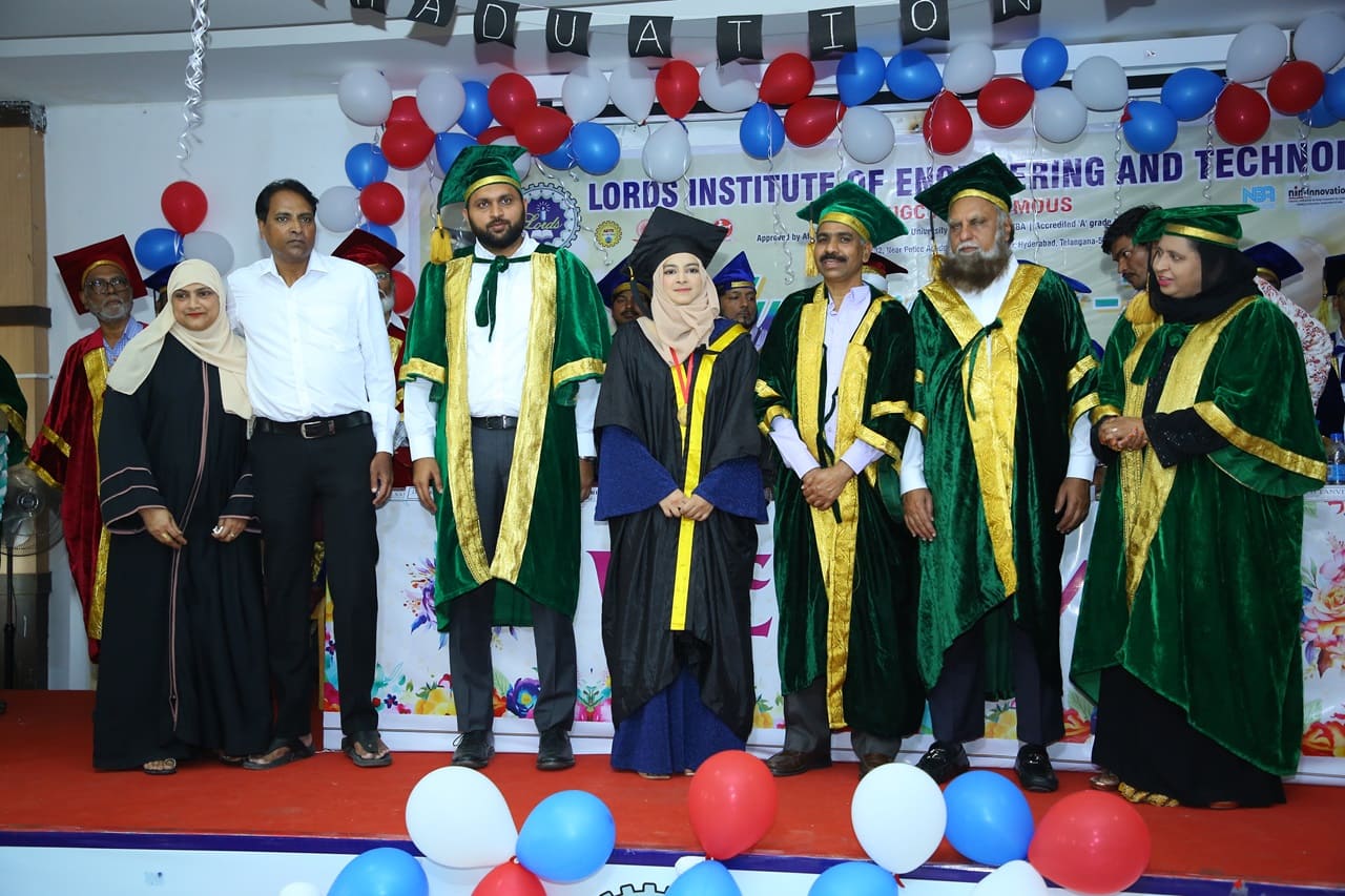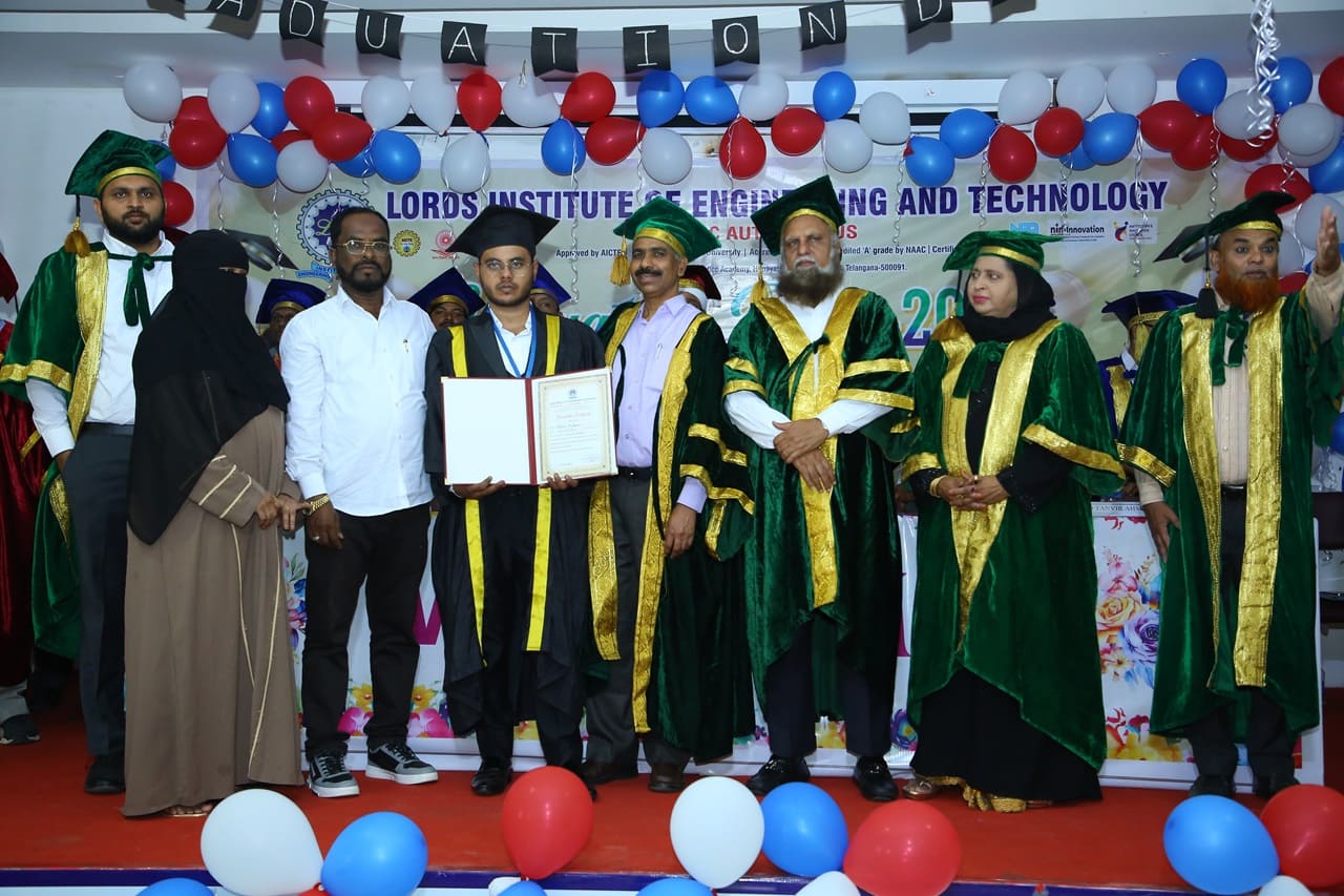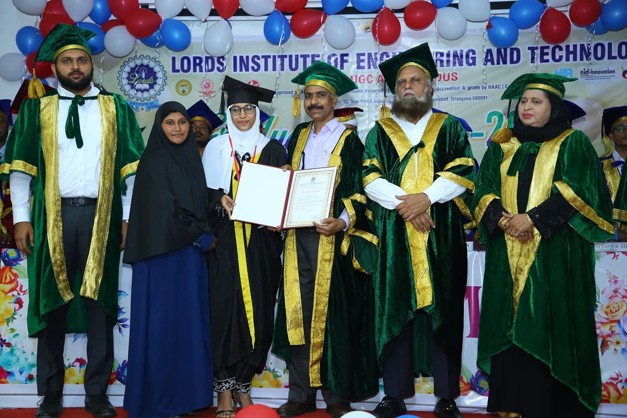 Description: Lords Institute of Engineering and Technology has organised “Graduation Day Ceremony” for the batch of 2020-2024 on Saturday, 14th September 2024 at 11.00 AM. The event was graced by the chief Guest Prof. P. Laxminarayana, Registrar, Osmania University, Hyderabad, Telangana and the Guest of Honour was Janab C. A. Basha Mohiuddin, Chairman, LIET along with the Secretary, Mrs Rizwana Begum; Vice-Chairman, Mr Syed Tousif Ahmed; Principal, Dr Ravi Kishore Singh, Deans, HODs and staff members. Osmania University 2nd Rank from CSE-Data Science,5th Rank from Mechanical Engineering,6th,7th and 8th Rank from CSE-AIML & Electrical Engineering branches were Awarded with Gold Medals whereas other students were awarded with silver medals and Graduation certificates. Prof. P. Laxminarayana, Registrar, Osmania University, Hyderabad anticipated that the students should be the leaders and not the followers. They should follow technology and utilise education and knowledge in their lives. He also emphasised that the technology in the form of AI & Chat GPT must be used worthfully and ethically. Janab C.A. Basha Mohiuddin motivated the students about their future life and how education can change the life of every individual, the speeches of secretary and Vice-chairman followed the journey of students in the 4 years of Engineering course. More than 400 graduated students along with their parents participated in the event. The event was live streamed on College YouTube channel to mark its grand success at international level.