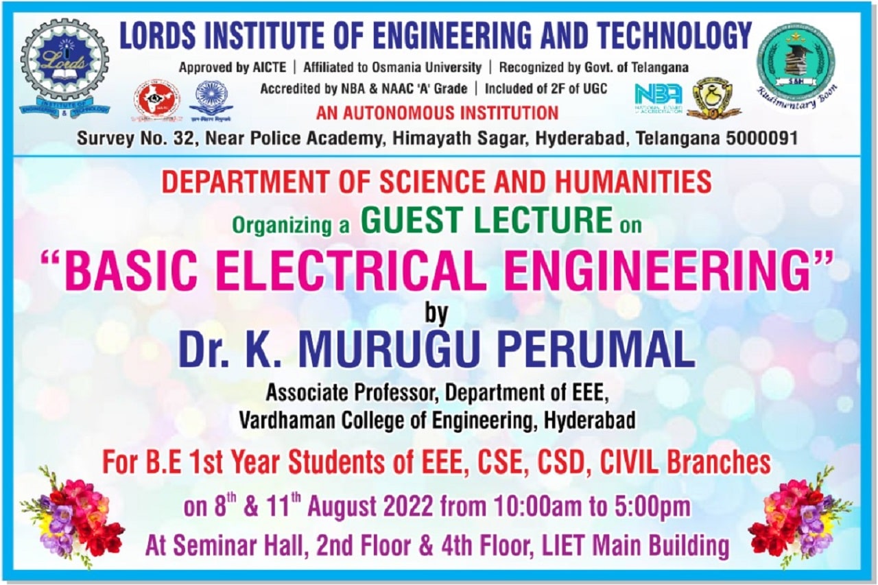 Guest Speaker: Dr.K. Murugu Perumal, Associate Professor, Department of EEE, Vardhaman College of Engineering, Hyderabad