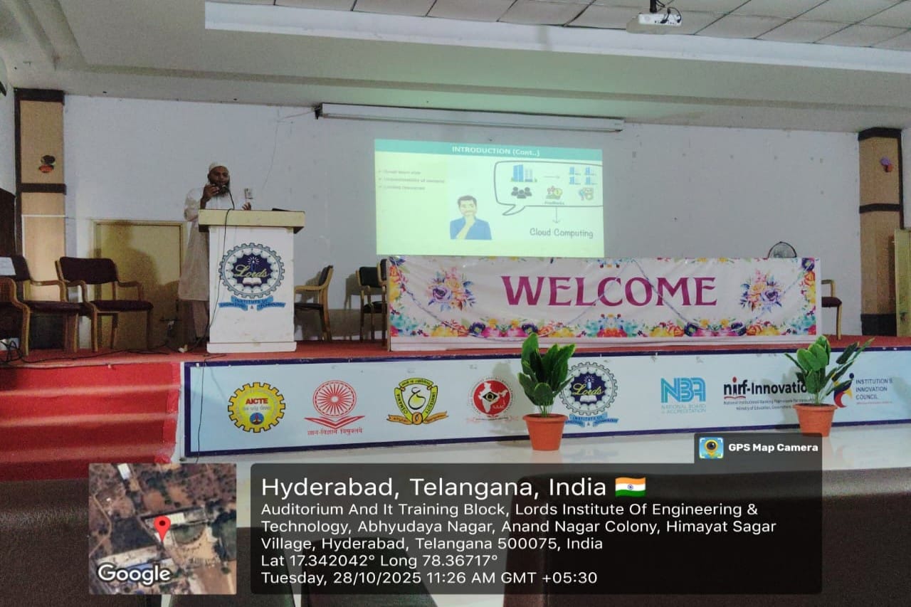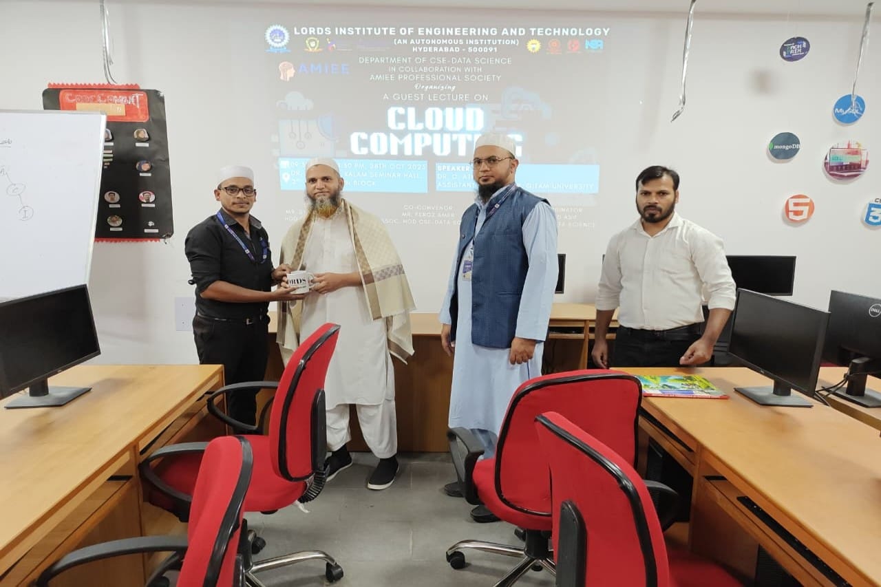 Description: The Department of CSE – Data Science, in collaboration with the AMIEE Professional Society, is organizing a Guest Lecture on Cloud Computing on 28th October 2025 at Dr. APJ Abdul Kalam Seminar Hall, 2nd Floor, Main Block. The session will be delivered by Dr. C. Atheeq, Assistant Professor, GITAM University. This lecture aims to provide participants with comprehensive insights into Cloud Computing technologies, including their architecture, deployment models, and applications in modern data-driven systems. It will enhance students’ understanding of how cloud platforms empower scalable computing, data storage, and analytics in today’s digital landscape.