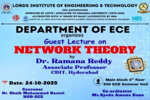 Description: The Department of Electronics and Communication Engineering at LIET organizing the guest lecture on Network Theory by Dr. Ramana Reddy on 24th April 2025 with 49 students participating offers a great opportunity to deepen understanding of these foundational concepts and more advanced topics in circuit analysis