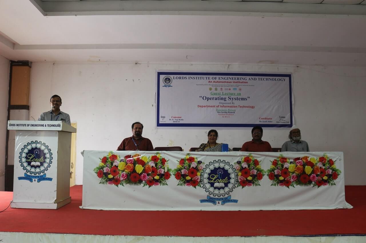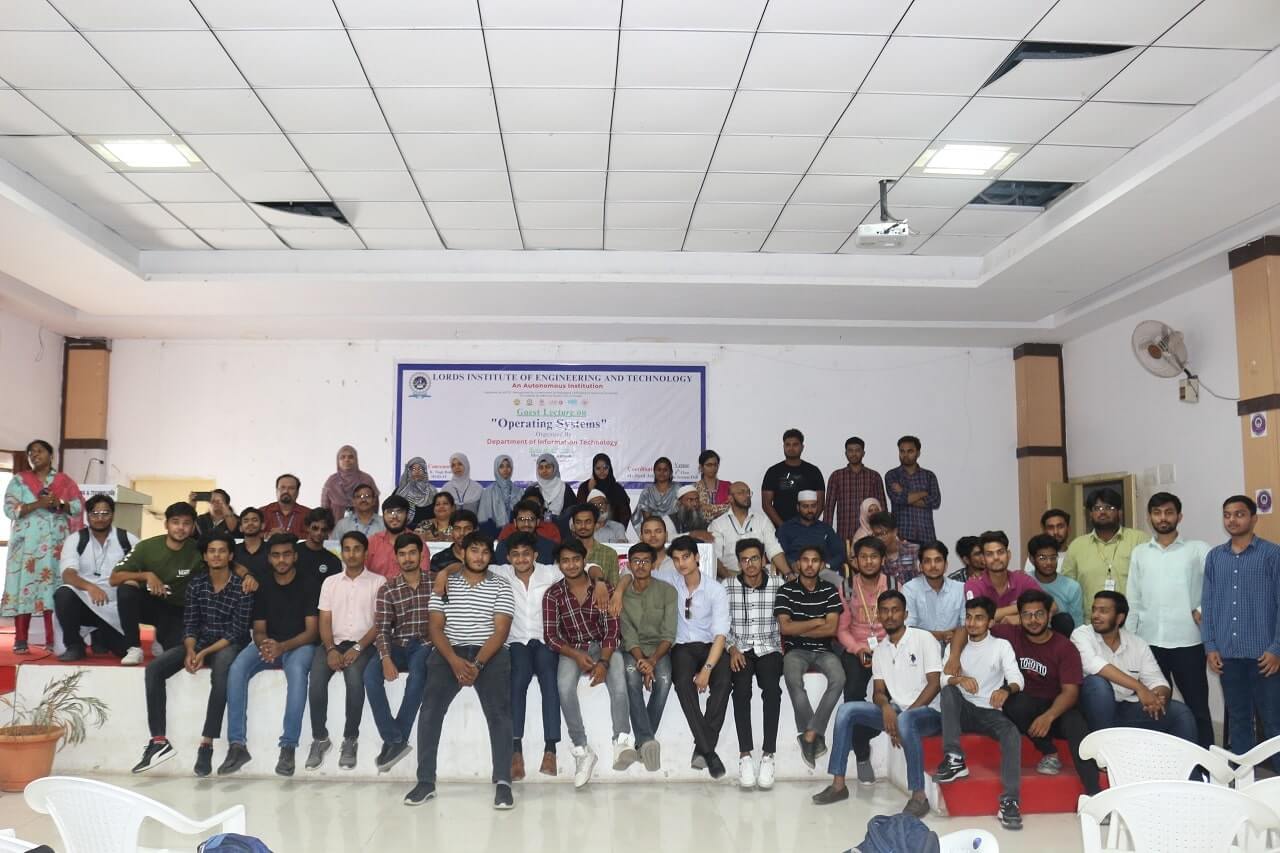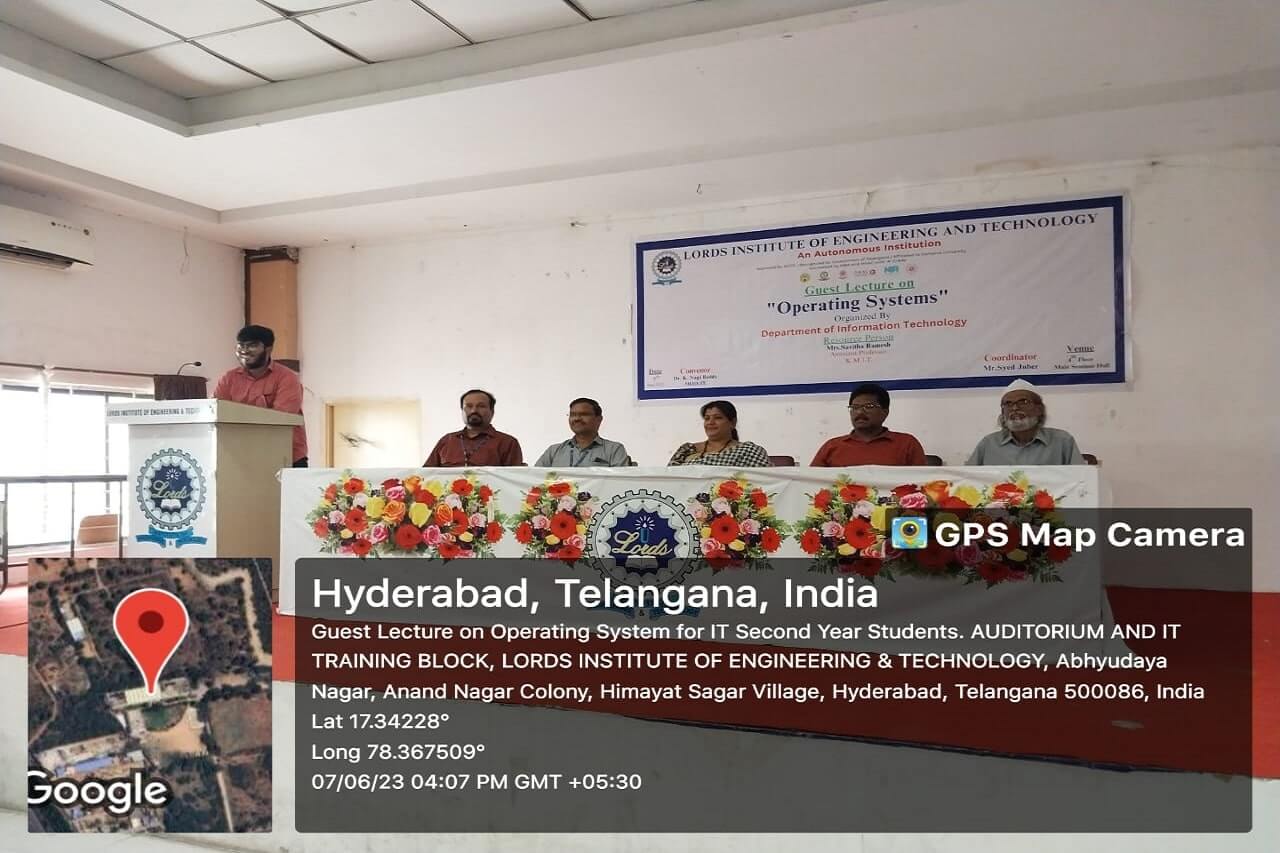 Description: A Guest Lecture on Operating Systems was organized by the Department of Information Technology on 7th June 2023 at Lords Institute of Engineering and Technology, Hyderabad. On total 127 students have participated for the event. The main objective of the Guest Lecture was to provide the importance of Operating System in their academics as well as for placements. The convener of the event Dr. K.Nagi Reddy, HoD-IT welcomed all the participants , resource person and Directors & Deans of LIET who have showered their wishes to the participants towards their successful career.