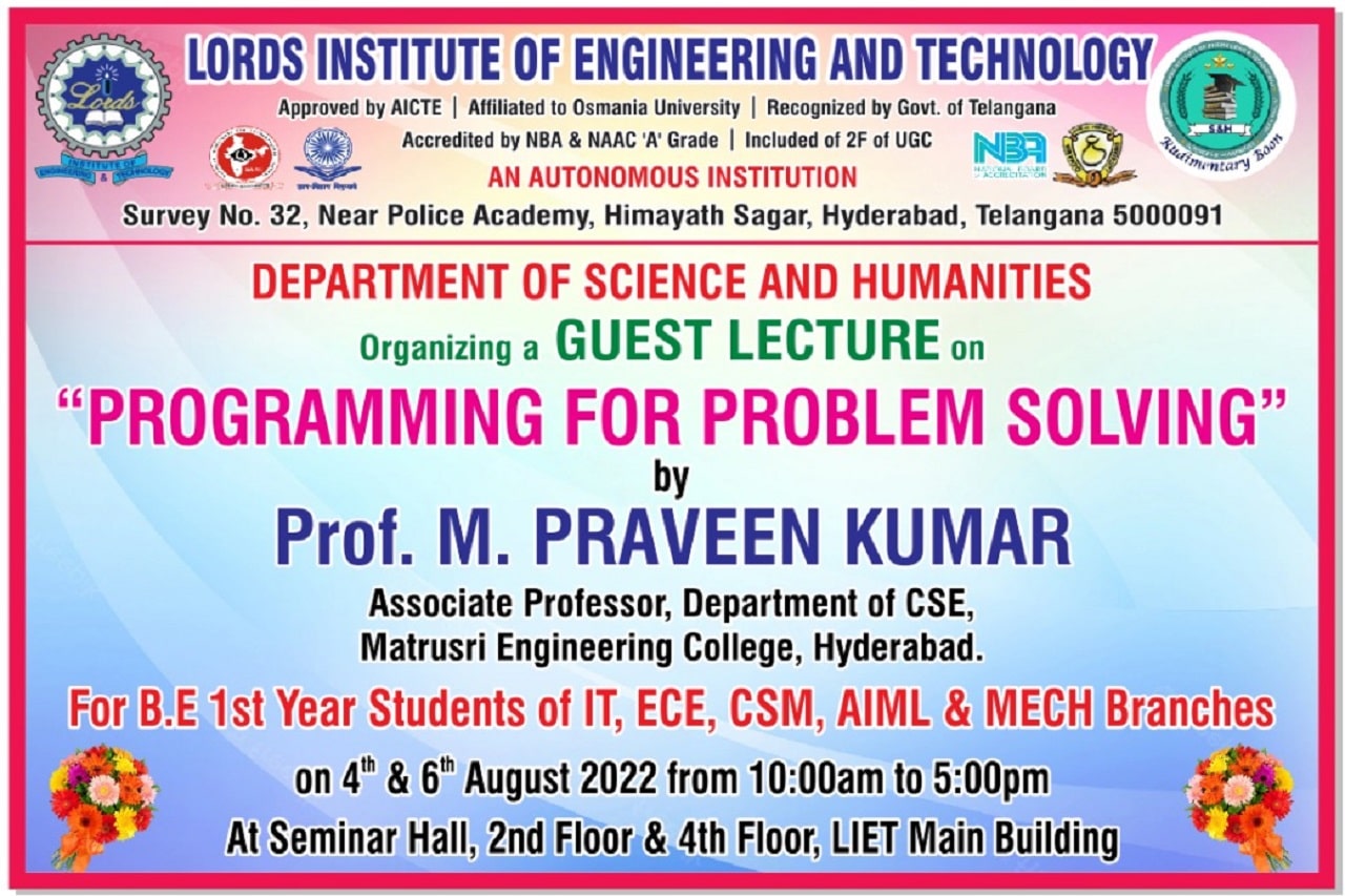 Guest Speaker: Prof. M Praveen Kumar, Associate Professor, Department of CSE, Matrusri Engineering College, Hyderabad.