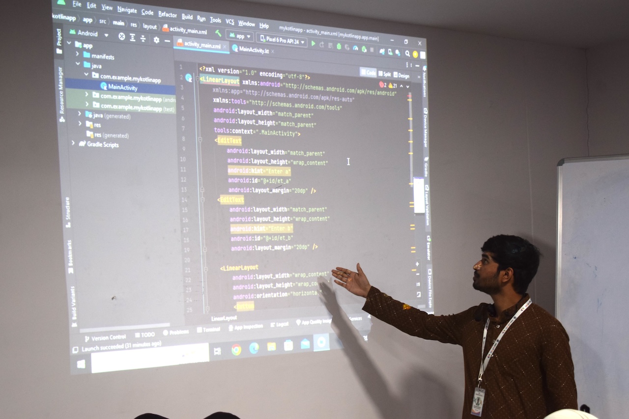 Description of the event: Hackmas Android Edition – December 2023 to January 2024, organized by Google DSC, took place on January 12th. The event saw participation from more than 60 students, including first-year academic students. Participants were assigned tasks to develop an app from scratch. The session was an enriching experience, providing a deep dive into practical learning and showcasing the dynamic realm of Android development.