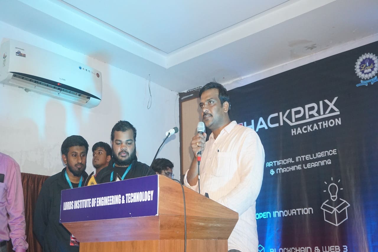 HACKATHON is a time-limited event where teams collaborate to develop software projects, fostering innovation, skill development, and networking. These events, lasting from a day to a week, include competitive elements with judging and prizes and are used for rapid prototyping, recruitment, community building, and addressing social issues. Lords Institute of Engineering and Technology made history by hosting the ground-breaking 36 hours hackathon named "HACKPRIX," the first of its kind in Telangana state. Held on June 8th and 9th, 2024, the event witnessed enthusiastic participation from over 455 students representing more than 70+ cities across 20+ states of India, including participants from prestigious institutions like NITs and IITs. Sponsored by Title partner Lords Institute of Engineering and Technology, Track partner Tezos and Polygon, Merchandise partner Bobble Fanstore, Gold Partner GitHub and Hack quest, Hiring partner Catalog, Platform partner Devfolio.