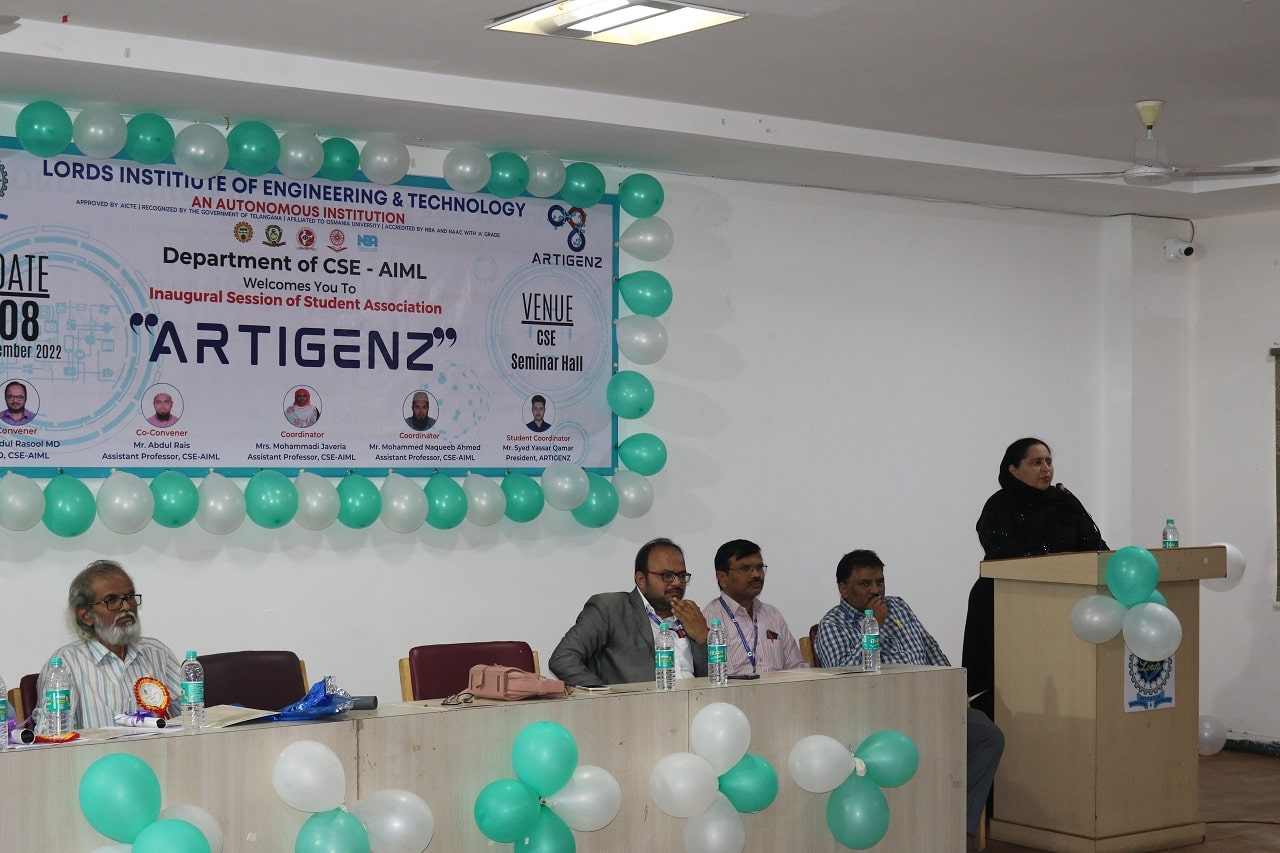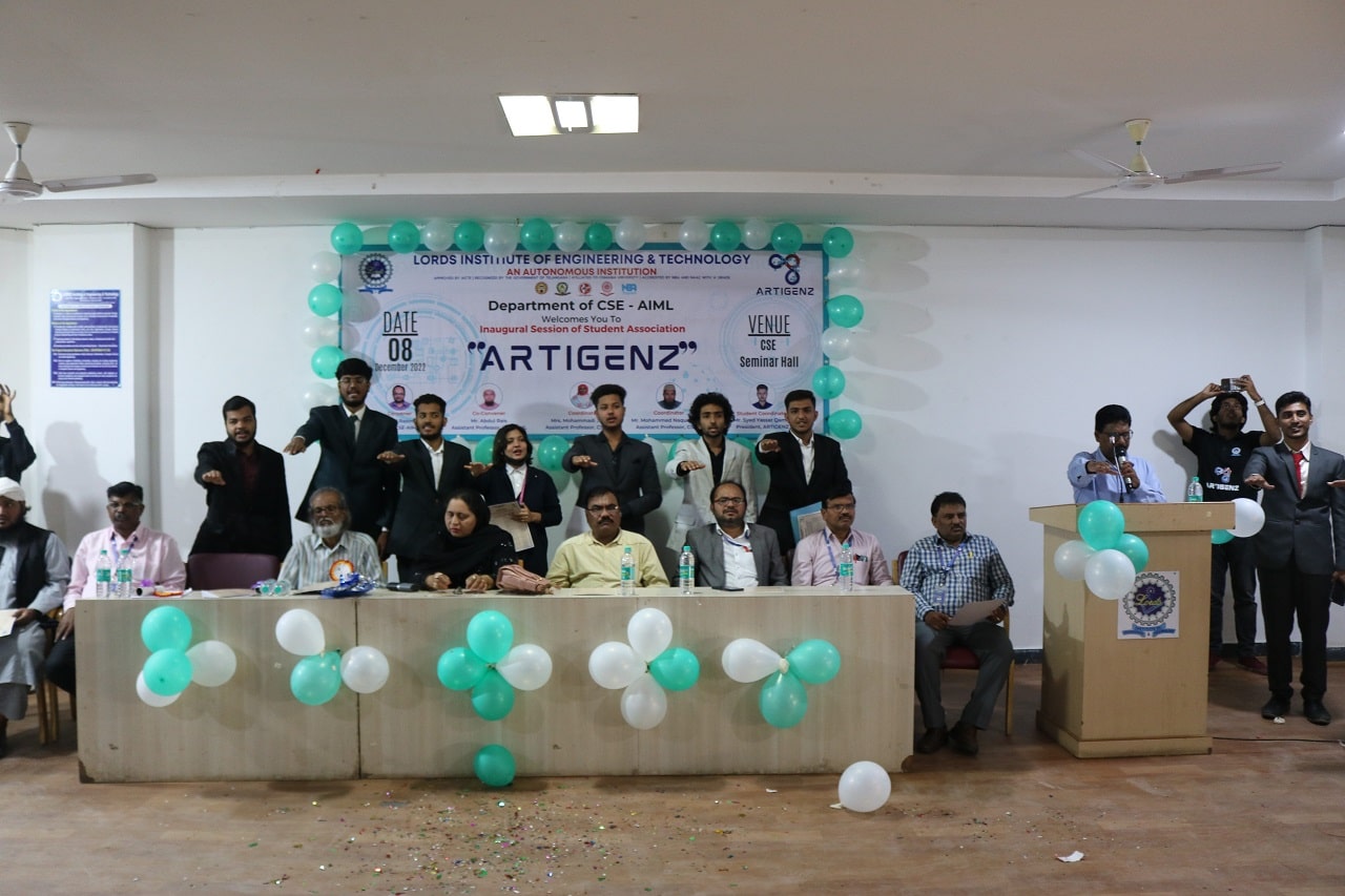 Description: The Department of Computer Science & Engineering, AIML organized an Inauguration Session of Student Association ARTIGENZ at Lords Institute of Engineering and Technology. The Objective of Student Association exist for the purpose of bringing students together, helping them acclimate to life at the College level, connecting them to other students, as well as alumni, and can help students develop transferable skills. etc. The session was interesting. The concepts benefits of being involved in student council include Opportunity to improve reading and writing skills, gain experience in public speaking, and learn how to make a positive impact on College and community environment.