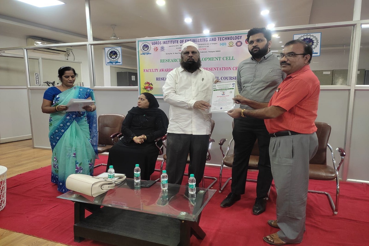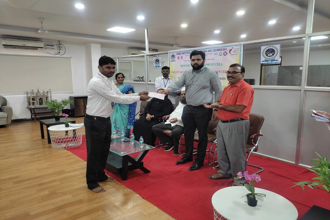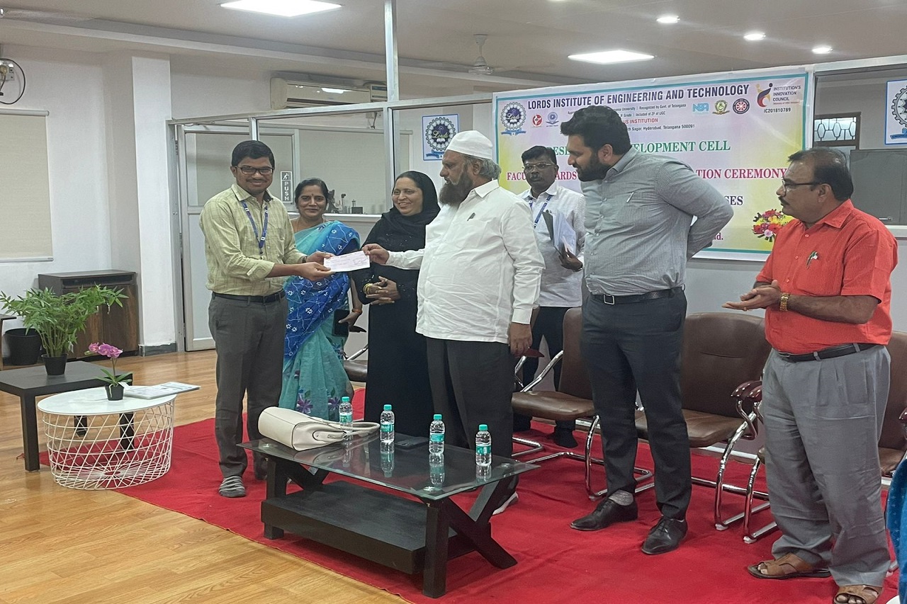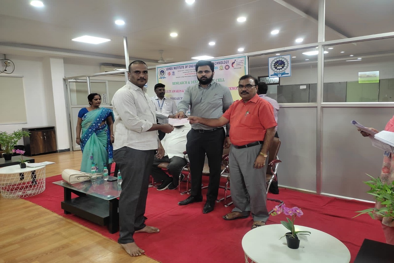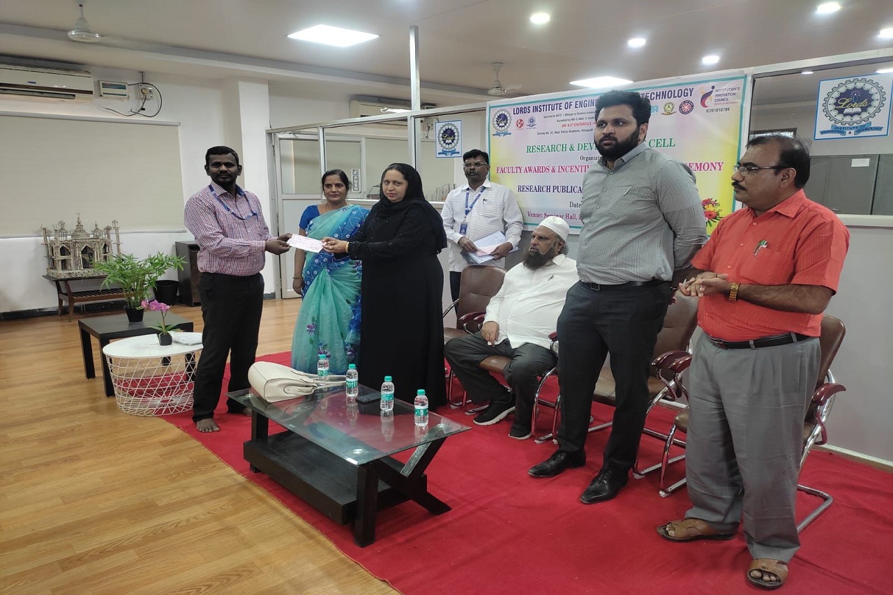 The Management of LORDS Institute of Engineering and Technology (Autonomous) presented cash prizes in the form of cheques to faculty for their contribution towards research and development as per the research incentive policy of the Institution. The incentives and awards given to the faculties were in following categories