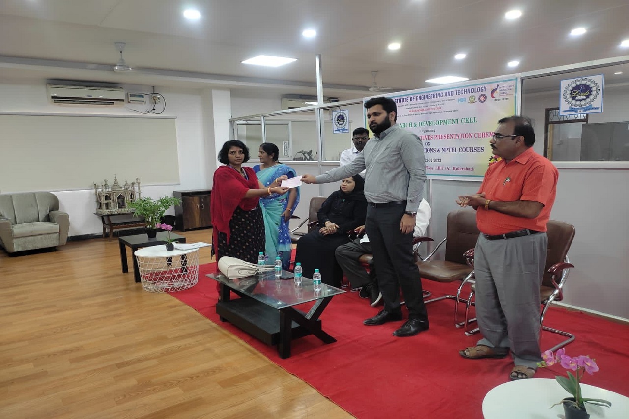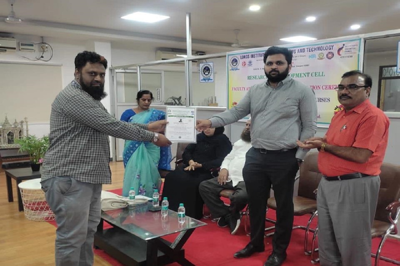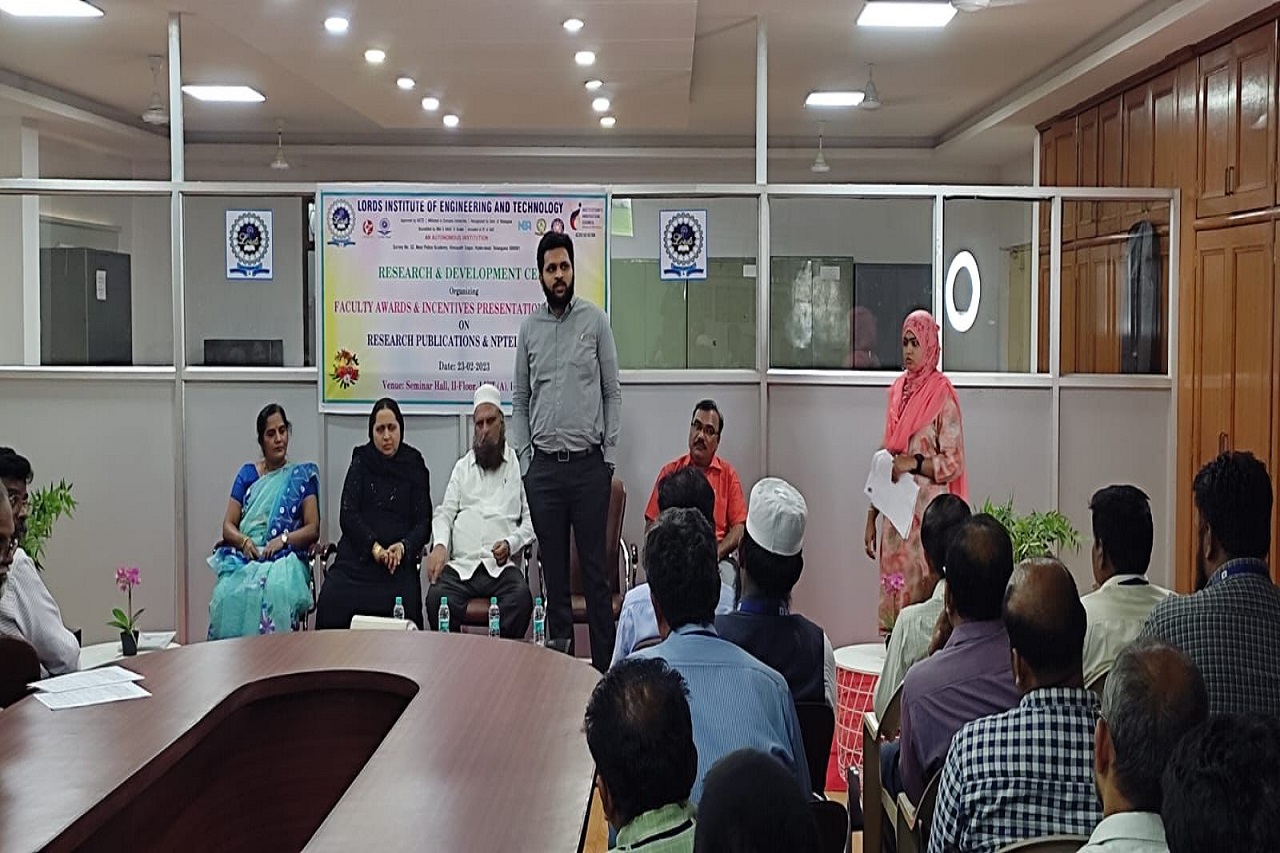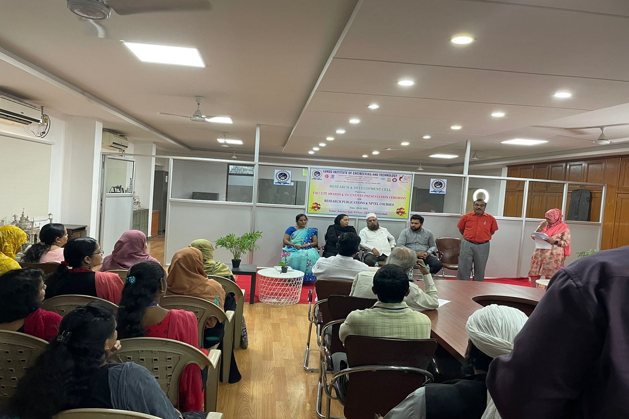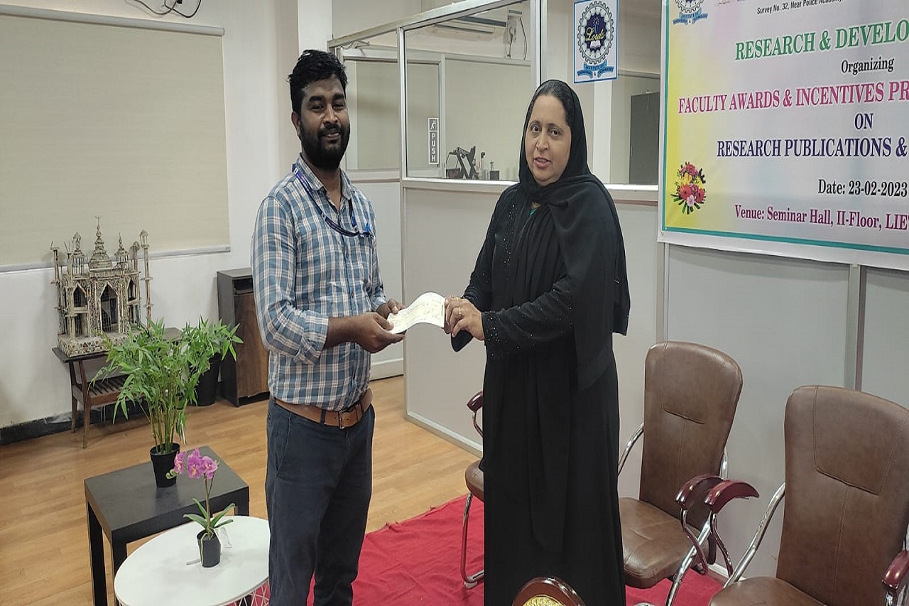 The Management of LORDS Institute of Engineering and Technology (Autonomous) presented cash prizes in the form of cheques to faculty for their contribution towards research and development as per the research incentive policy of the Institution. The incentives and awards given to the faculties were in following categories