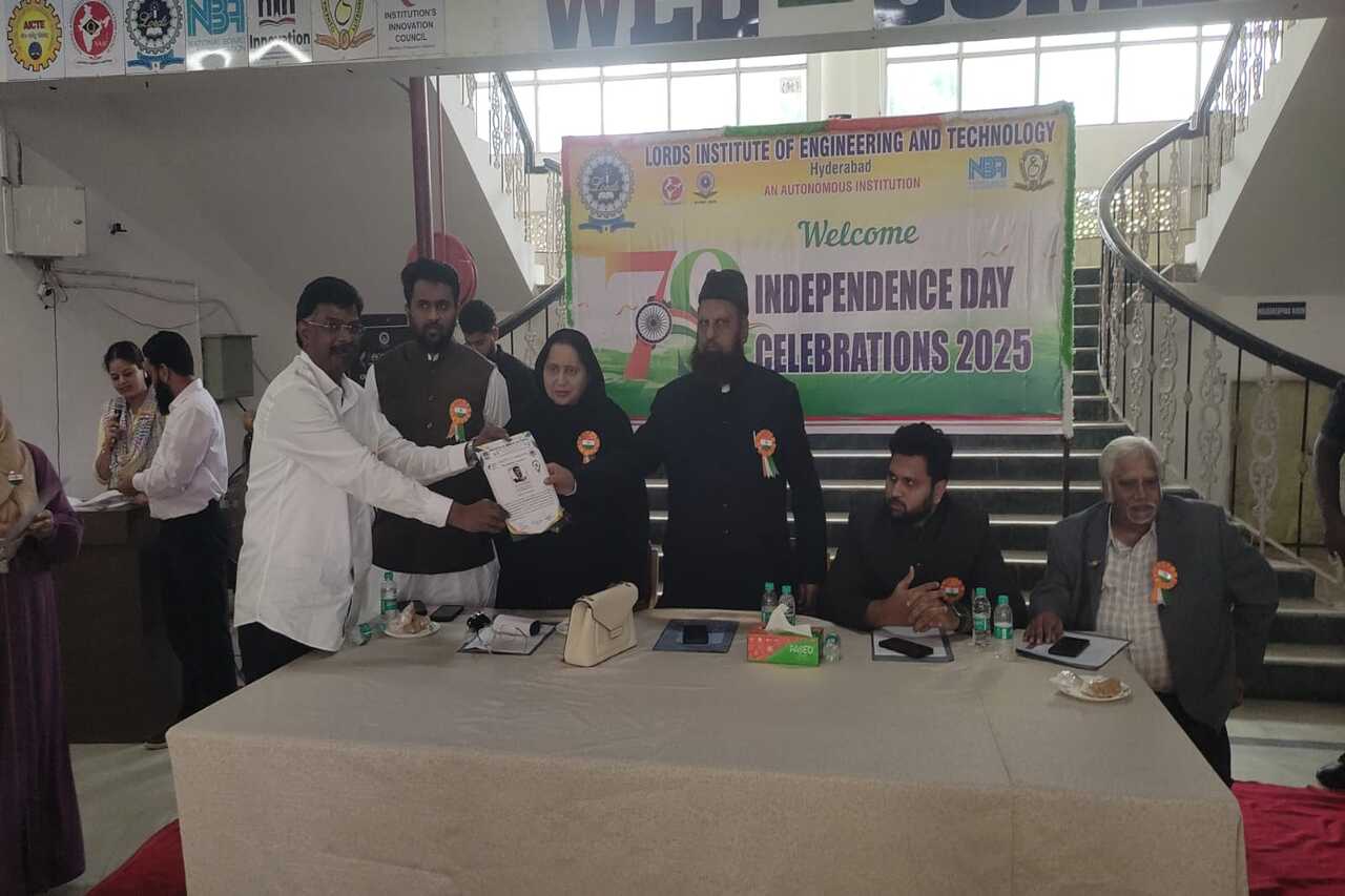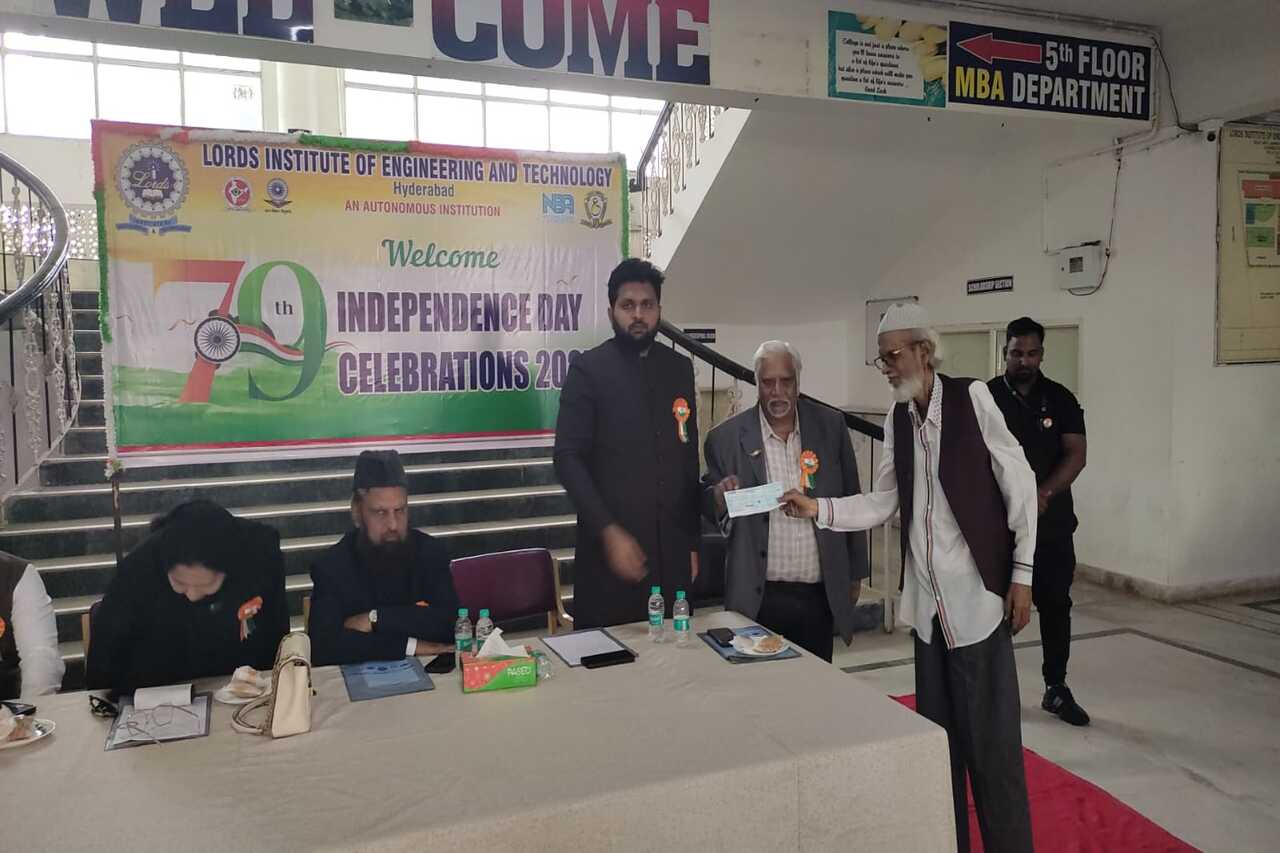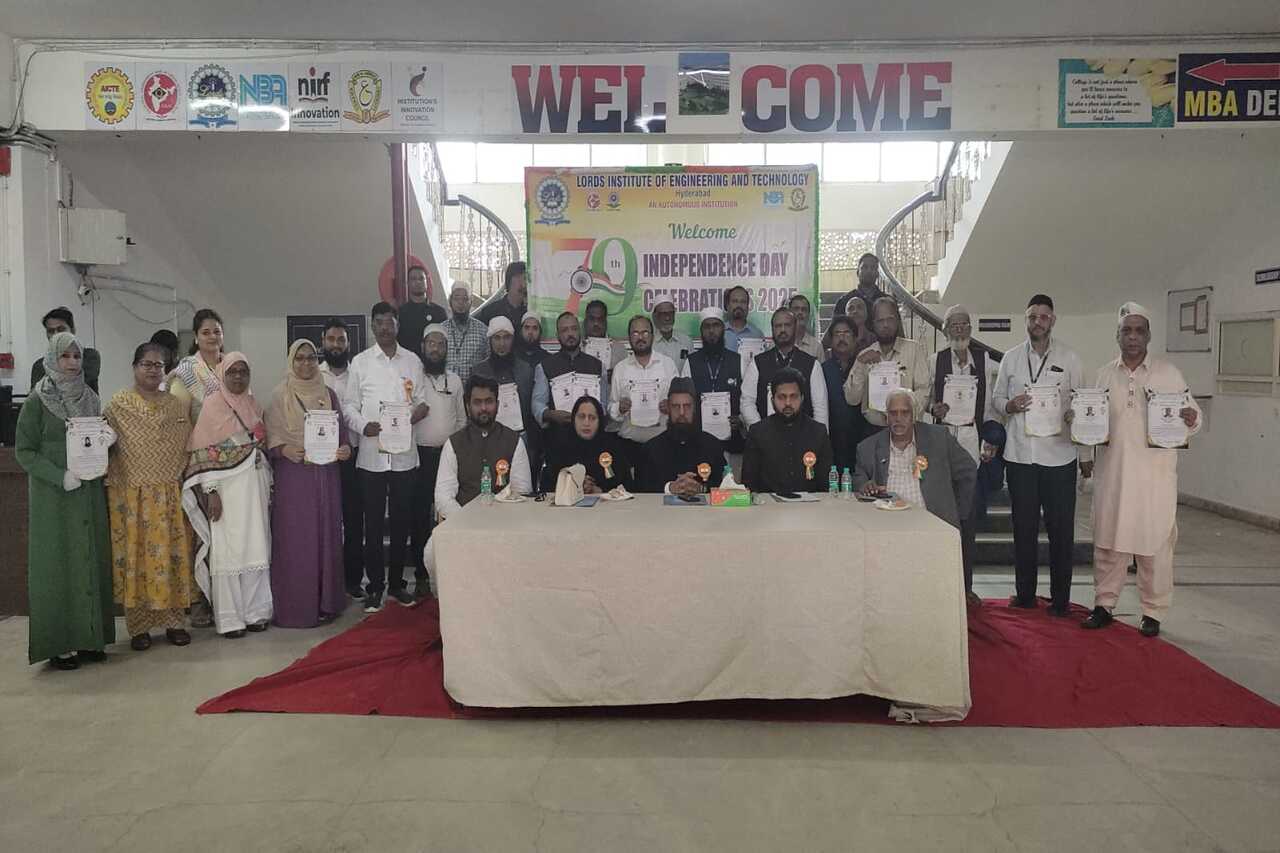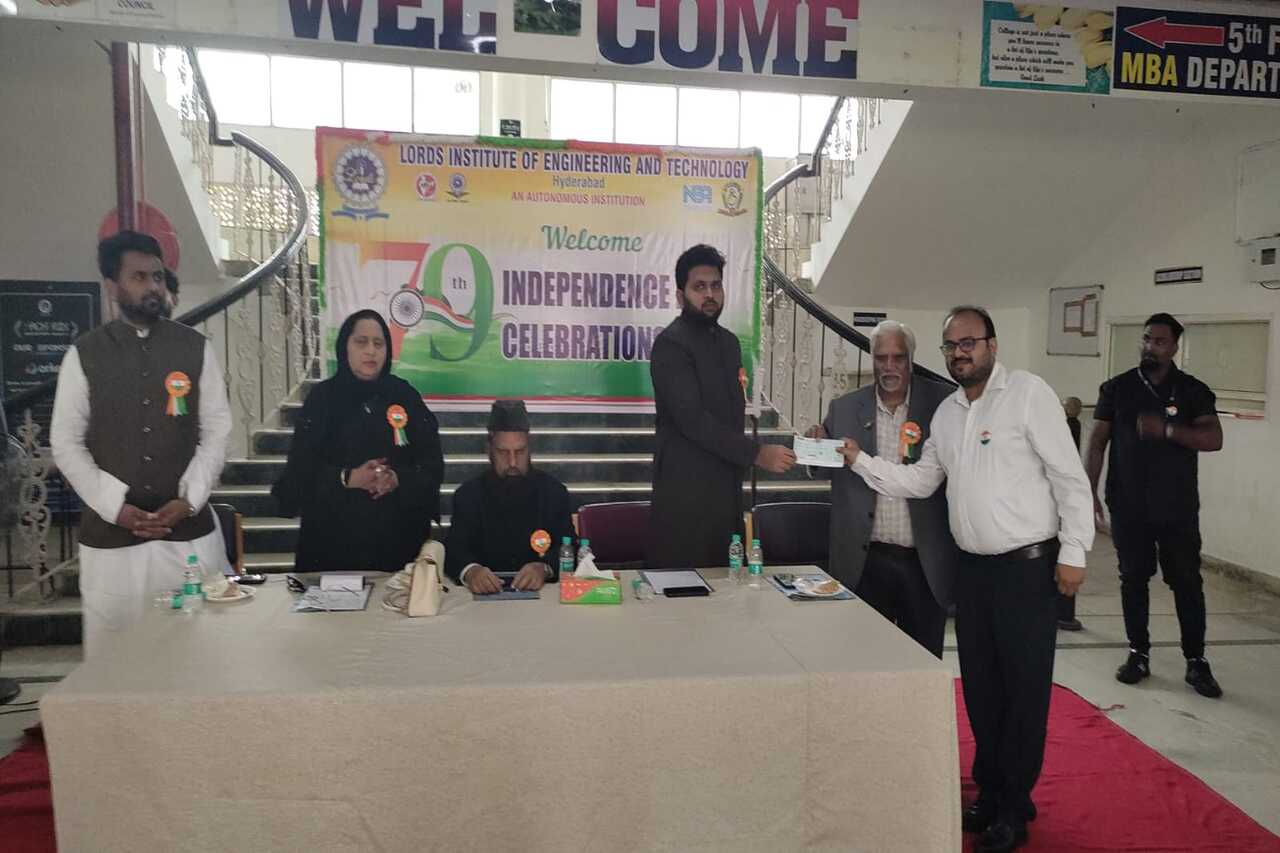 Description: Lords Institute of Engineering and Technology celebrated the 79th Independence Day with great patriotic fervor and enthusiasm. The celebrations began with the flag hoisting, followed by the Chairman’s inspiring address, highlighting the importance of discipline in life to build a responsible future generation. Faculty members were felicitated for their achievements in Research, Development, and NPTEL examinations. A special gesture was extended to newly married faculty members with the presentation of a gift cheque. The event, organized by the Arts and Cultural Cell, showcased national pride and institutional excellence, with more than 300 faculty members actively participated.