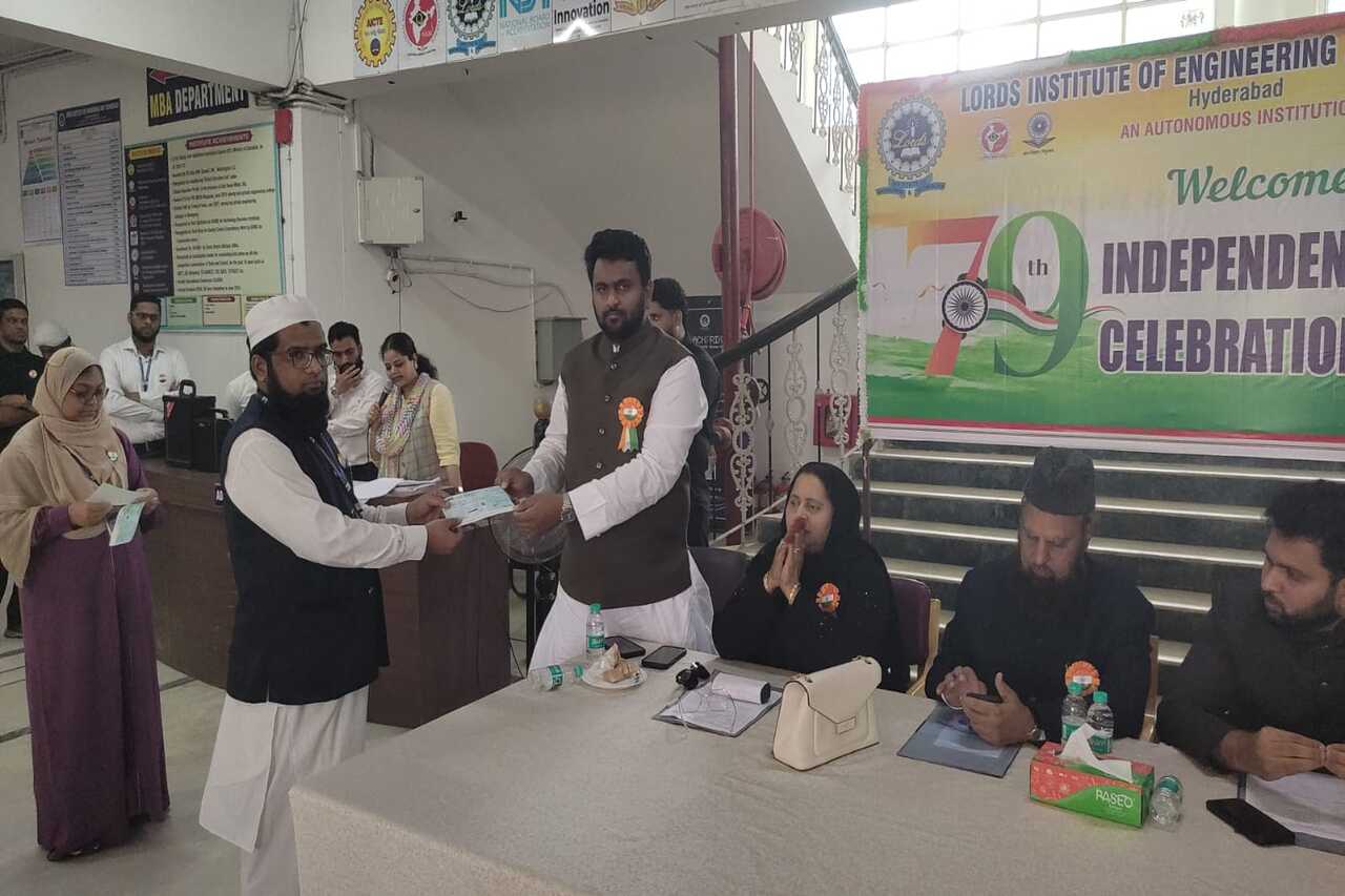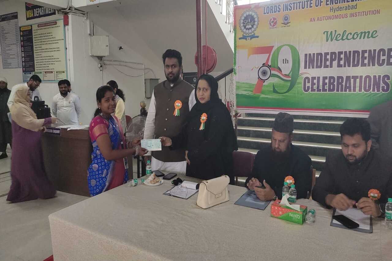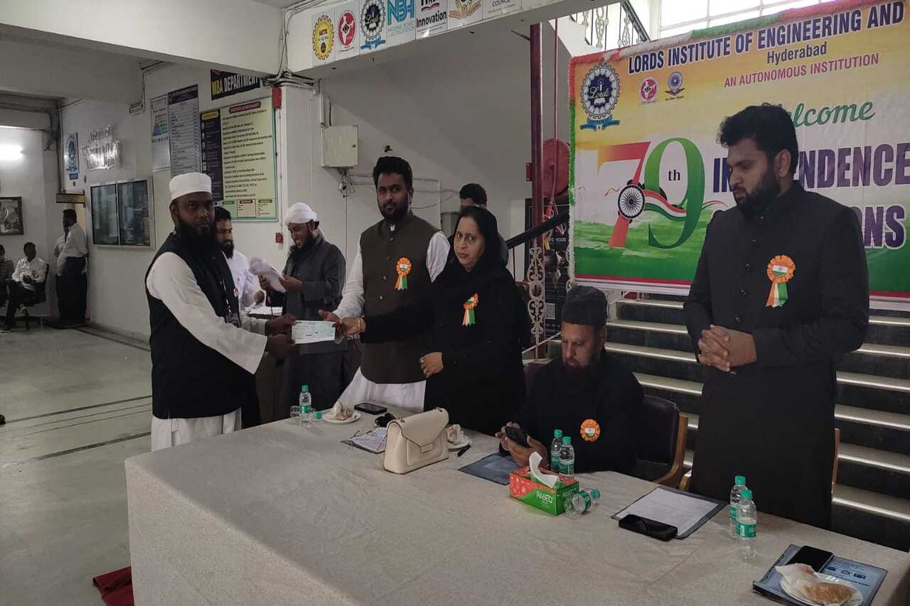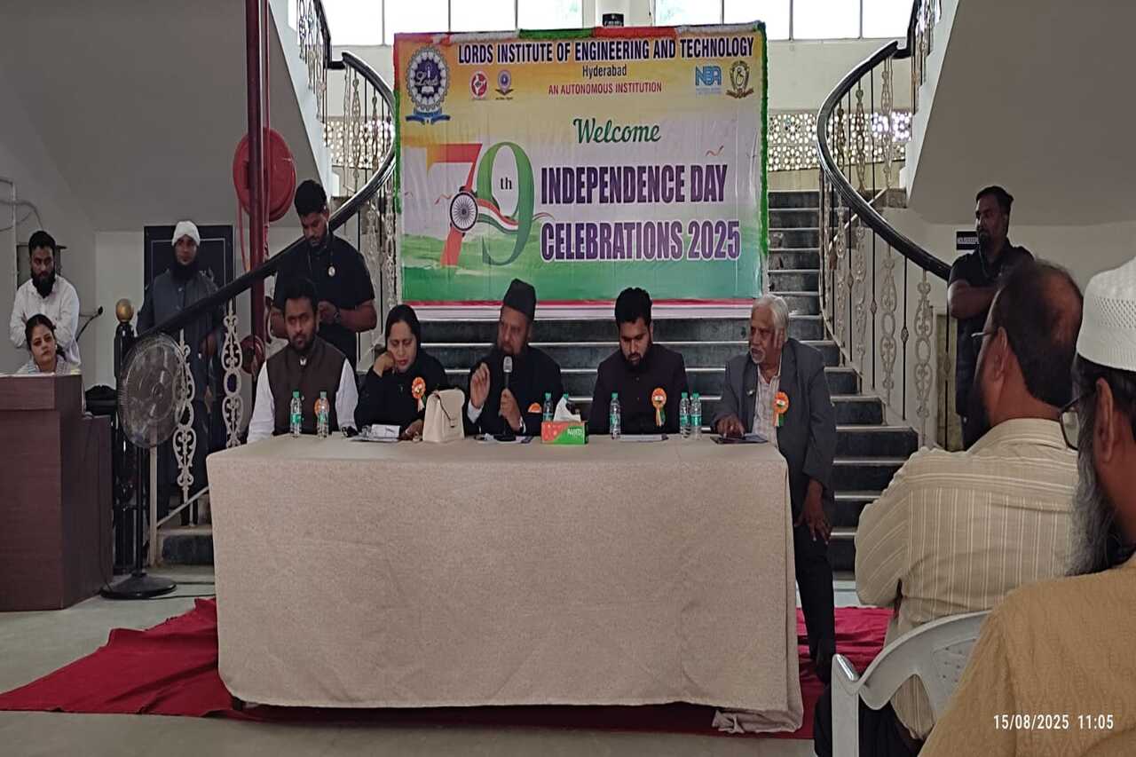 Description: Lords Institute of Engineering and Technology celebrated the 79th Independence Day with great patriotic fervor and enthusiasm. The celebrations began with the flag hoisting, followed by the Chairman’s inspiring address, highlighting the importance of discipline in life to build a responsible future generation. Faculty members were felicitated for their achievements in Research, Development, and NPTEL examinations. A special gesture was extended to newly married faculty members with the presentation of a gift cheque. The event, organized by the Arts and Cultural Cell, showcased national pride and institutional excellence, with more than 300 faculty members actively participated.